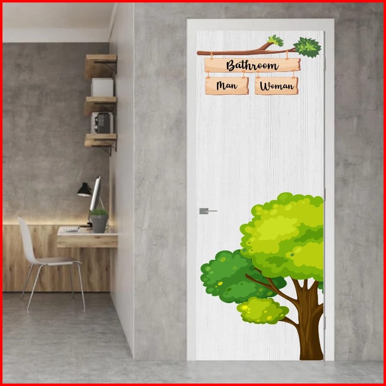 Stiker Pintu Toilet Kamar Mandi Motif Aesthetic Minimalis