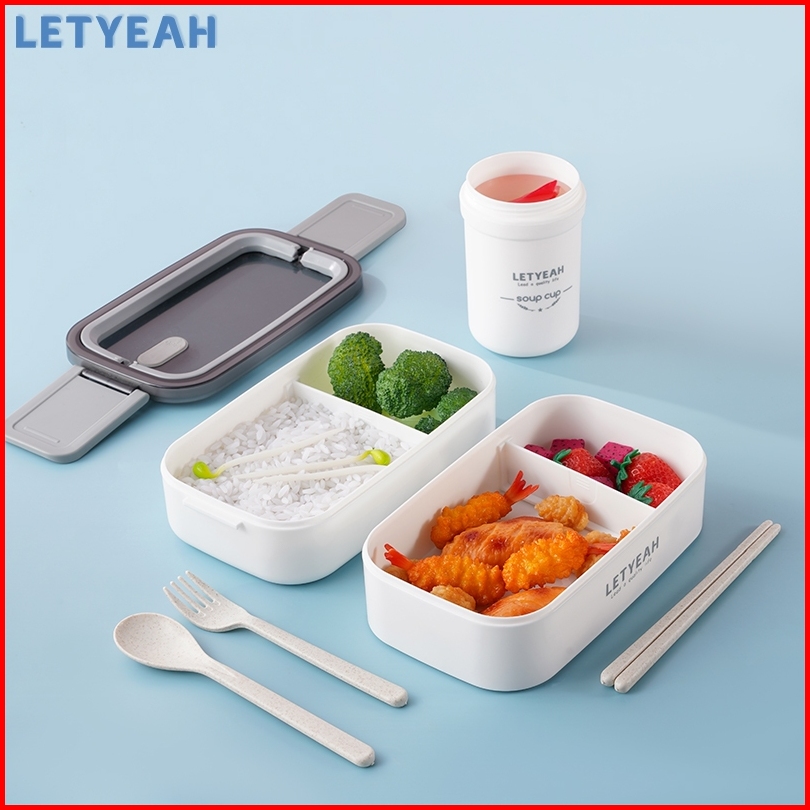 Letyeah Lunch Box Set Dengan Mangkuk Sup Portabel Tas Bekal Set 1600ml Kotak Makan Set Tempat Bekal Makan Anti Tumpah Bp