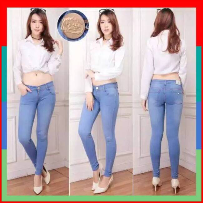Celana Softjins Cewe Skinny Jeans Wanita Polos Pensil