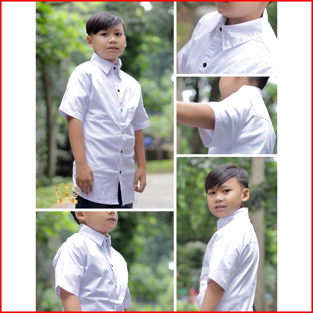 Luckyone Baju Kemeja Lengan Pendek Katun Stretch Anak Laki Laki Usia Tanggung Hitam Putih