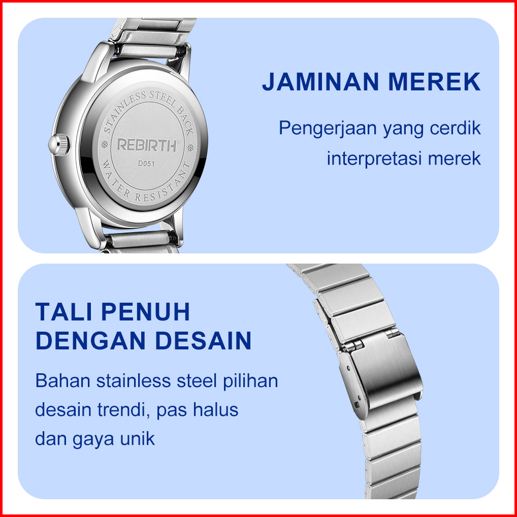 Rebirth Jam Tangan Wanita Original Anti Air Kecil Kuarsa Tali Stainless Steel Jam Tangan Cewek