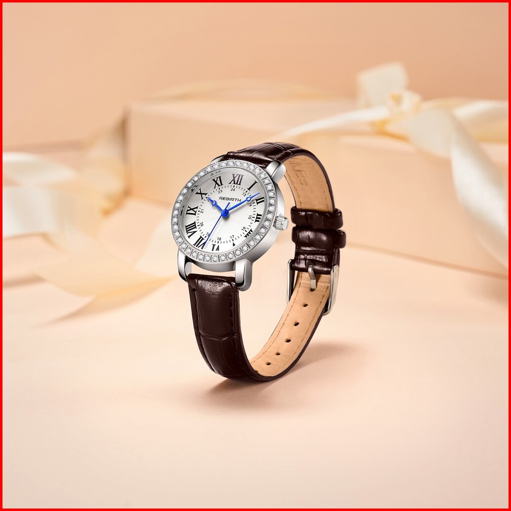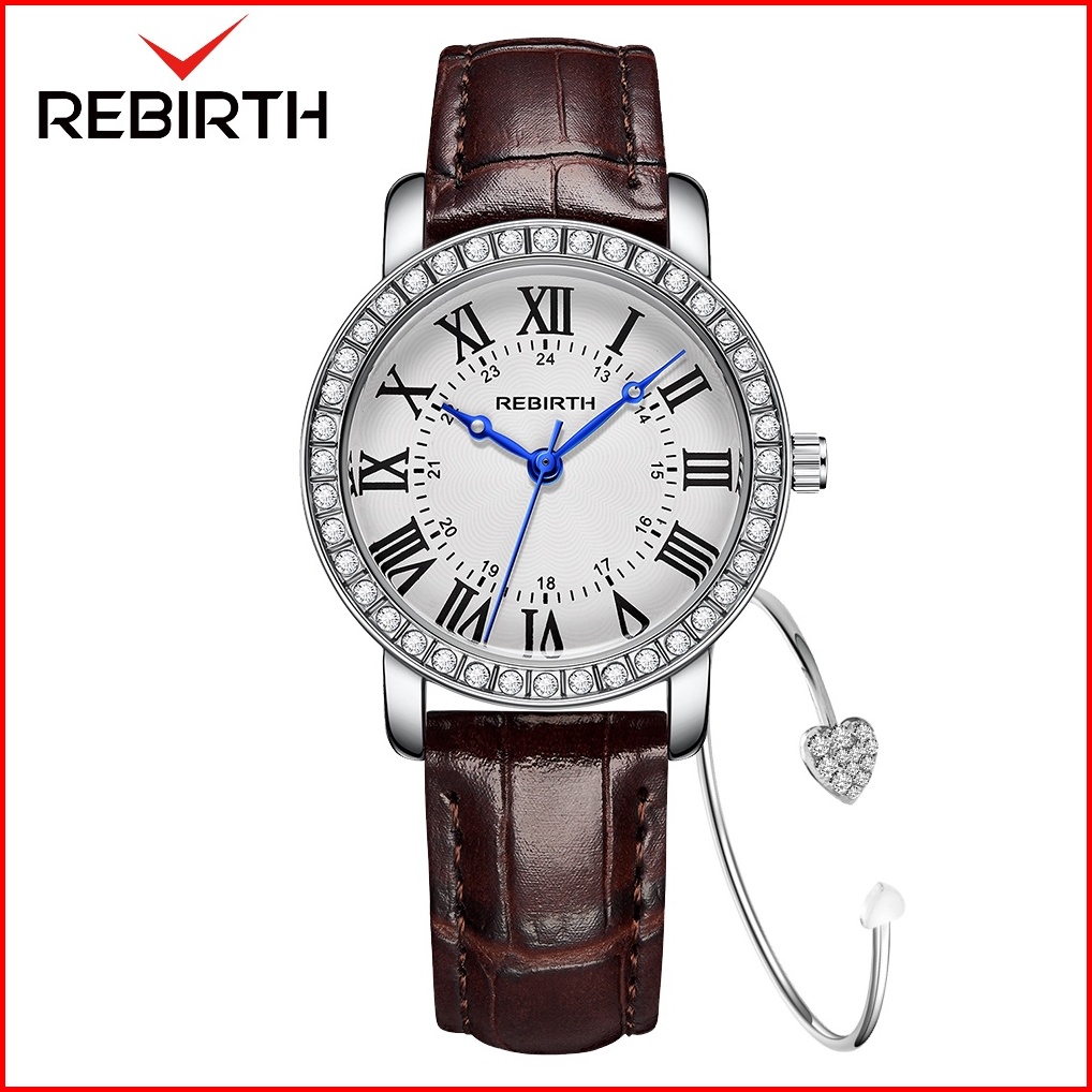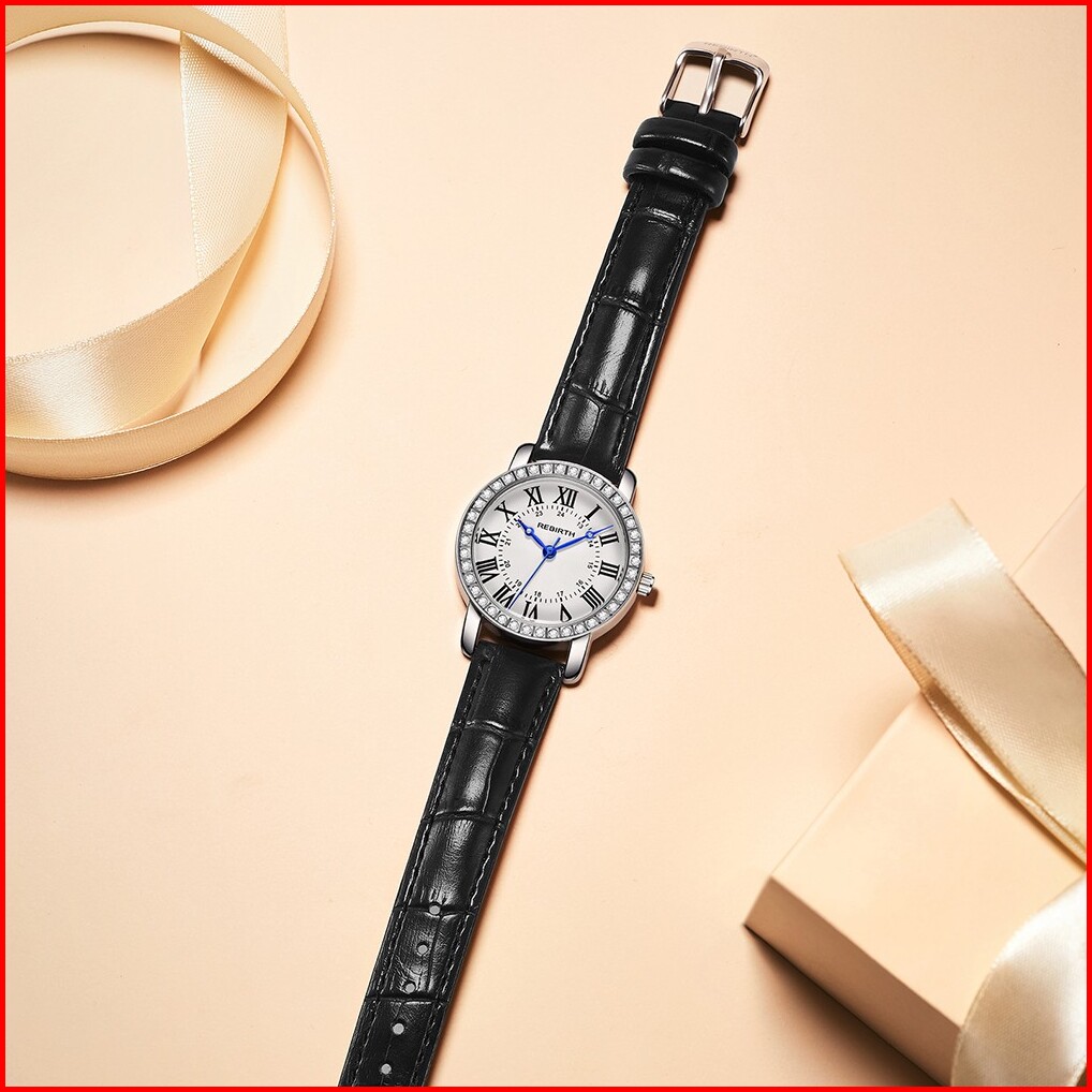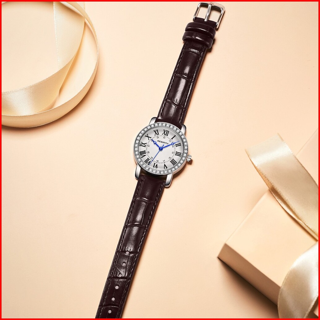 Rebirth Jam Tangan Wanita Original Santai Olahraga Roman Dial Tali Kulit Anti Air Kuarsa Jam Tangan Cewek