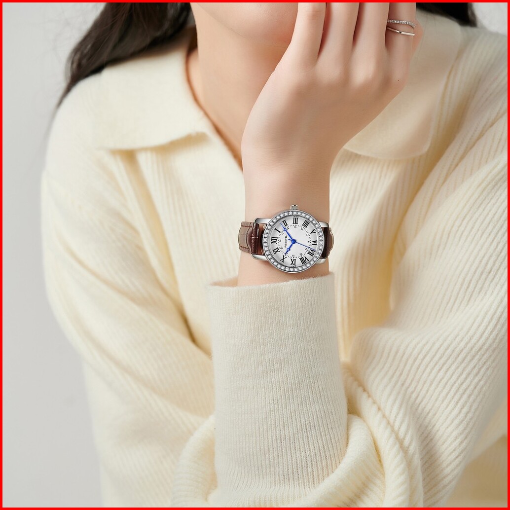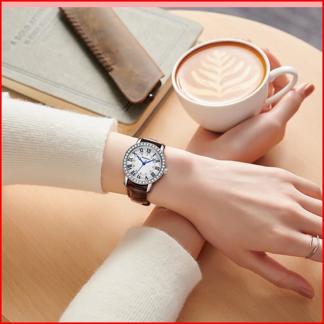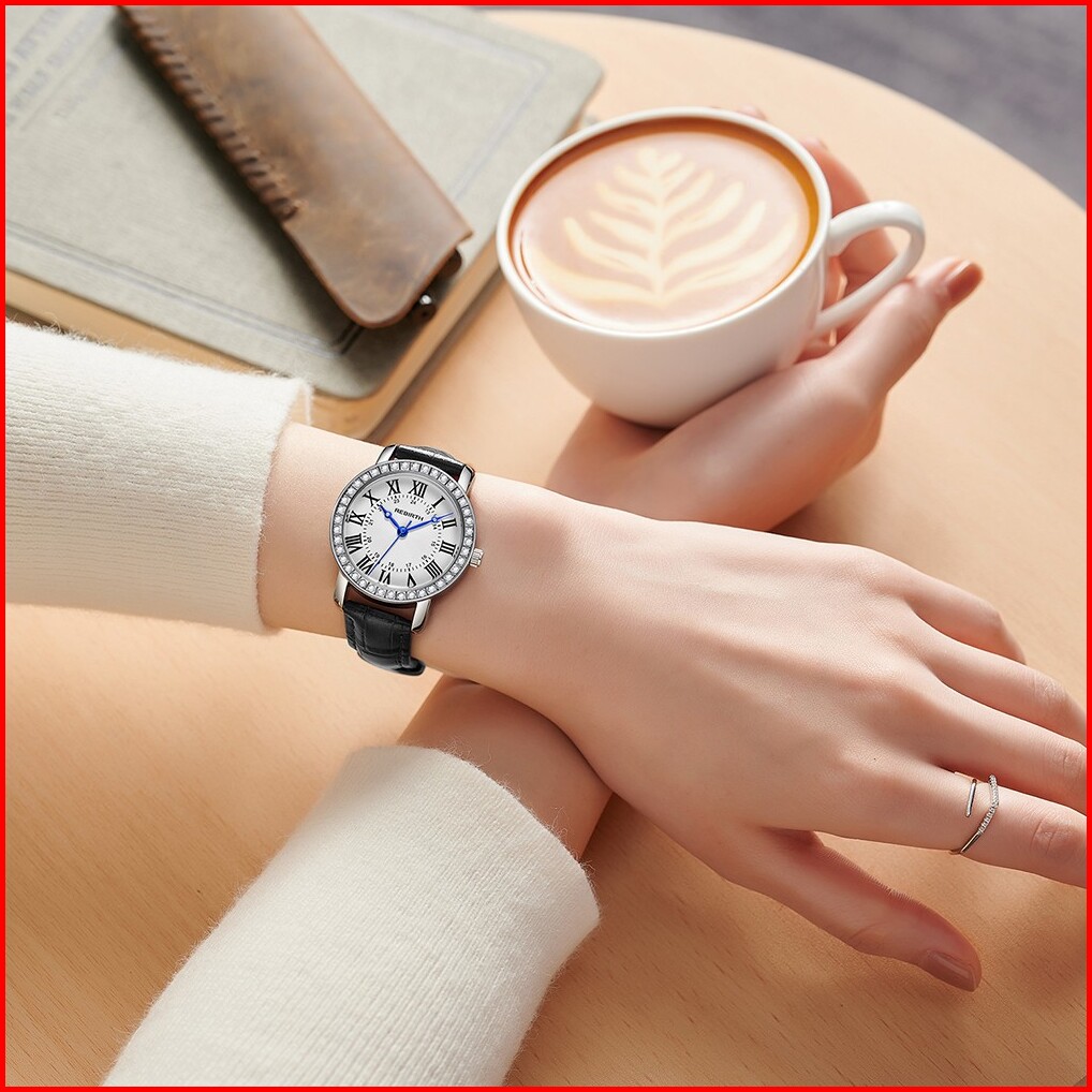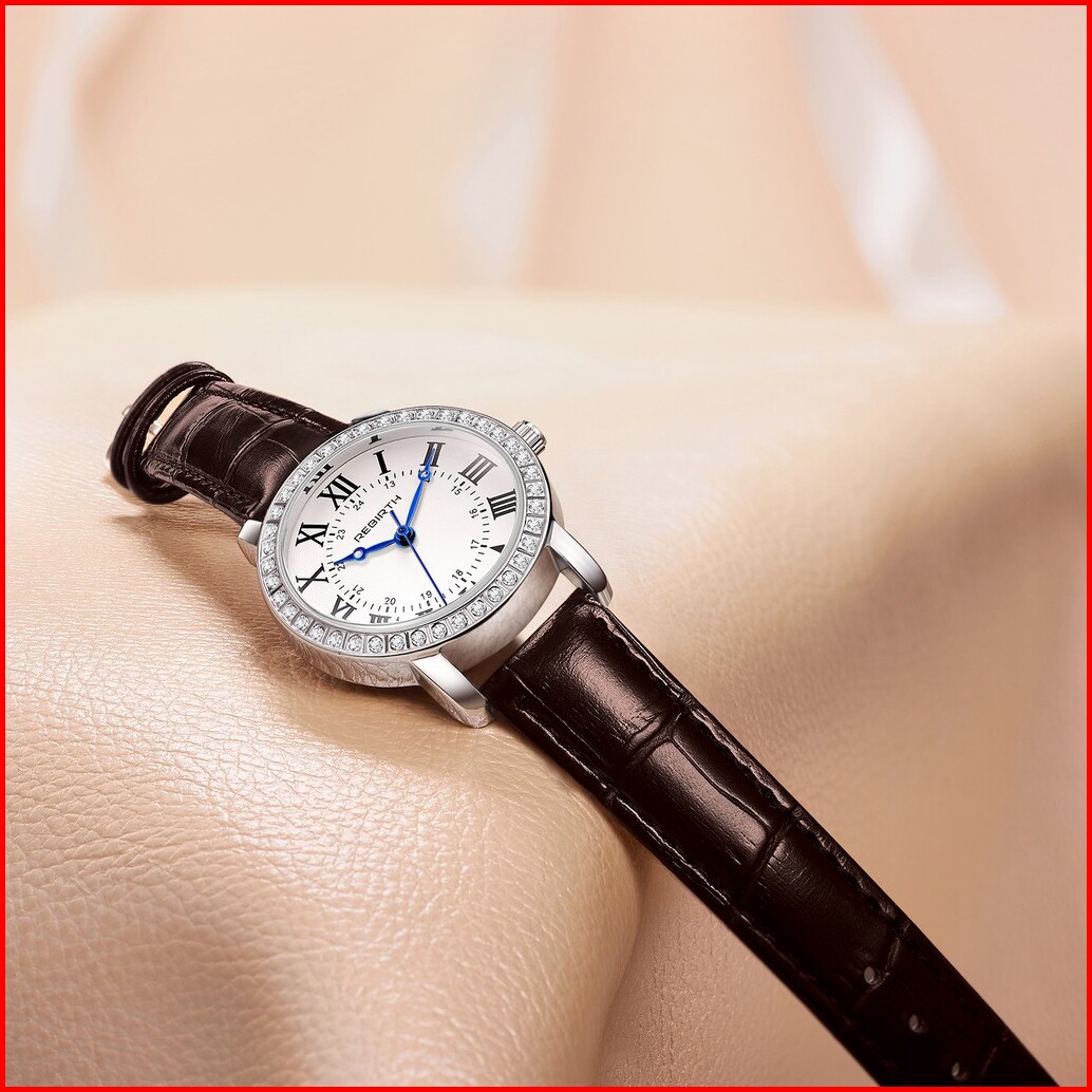 Rebirth Jam Tangan Wanita Original Santai Olahraga Roman Dial Tali Kulit Anti Air Kuarsa Jam Tangan Cewek