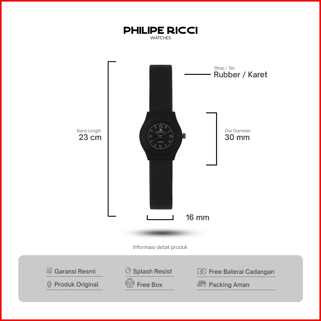 Philipe Ricci Jam Tangan Wanita Karet Analog Terbaru W6558 Free Box