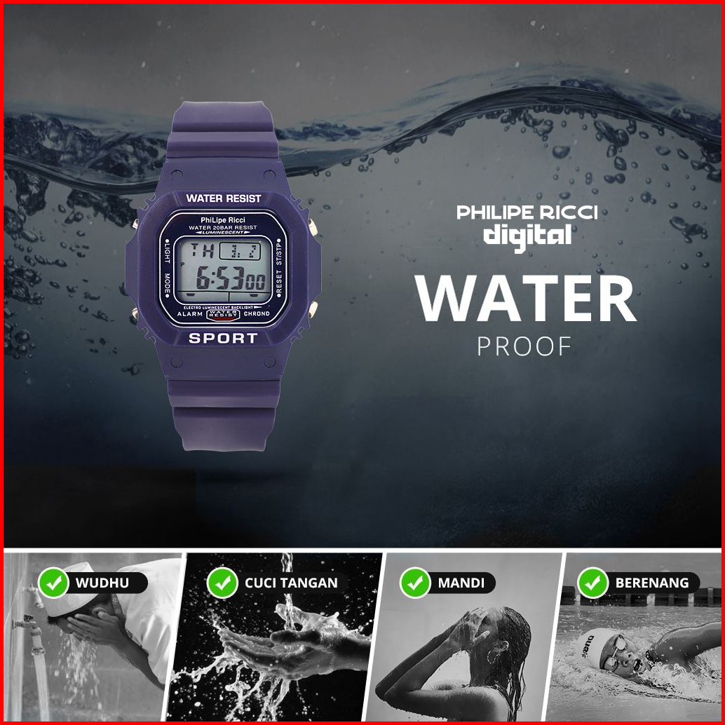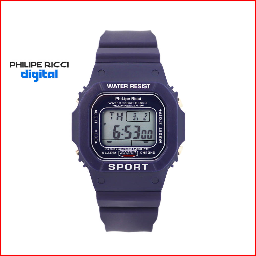 Philipe Ricci Digital Jam Tangan Pria Wanita Digital Sport Tahan Air Strap Ruber Terbaru 1810 Water Resist Watches Free