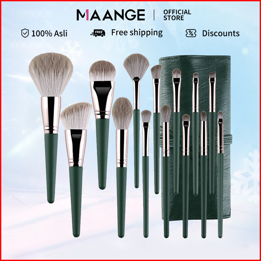 Maange 14 Pcs Brush Makeup Dengan Tas Hidung Lembut Detail Sorot Concealer Alis Eyeshadow Kosmetik Alat Kecantikan Kit 1