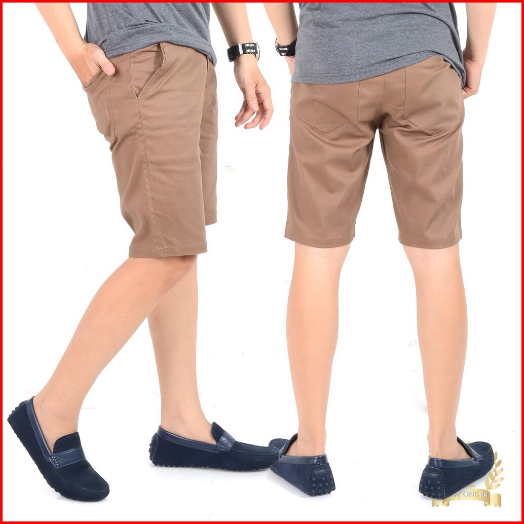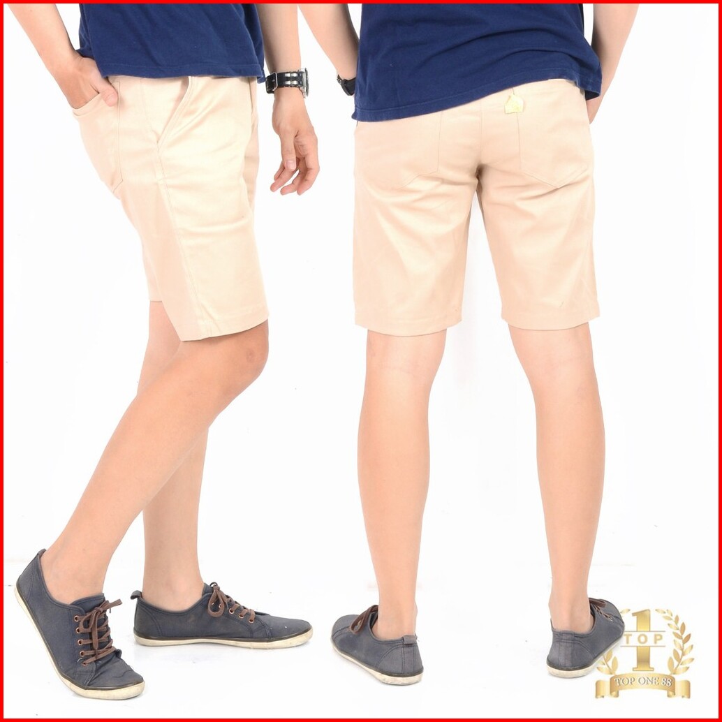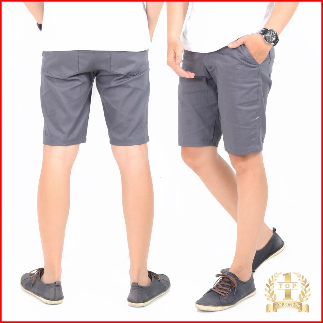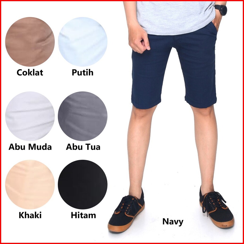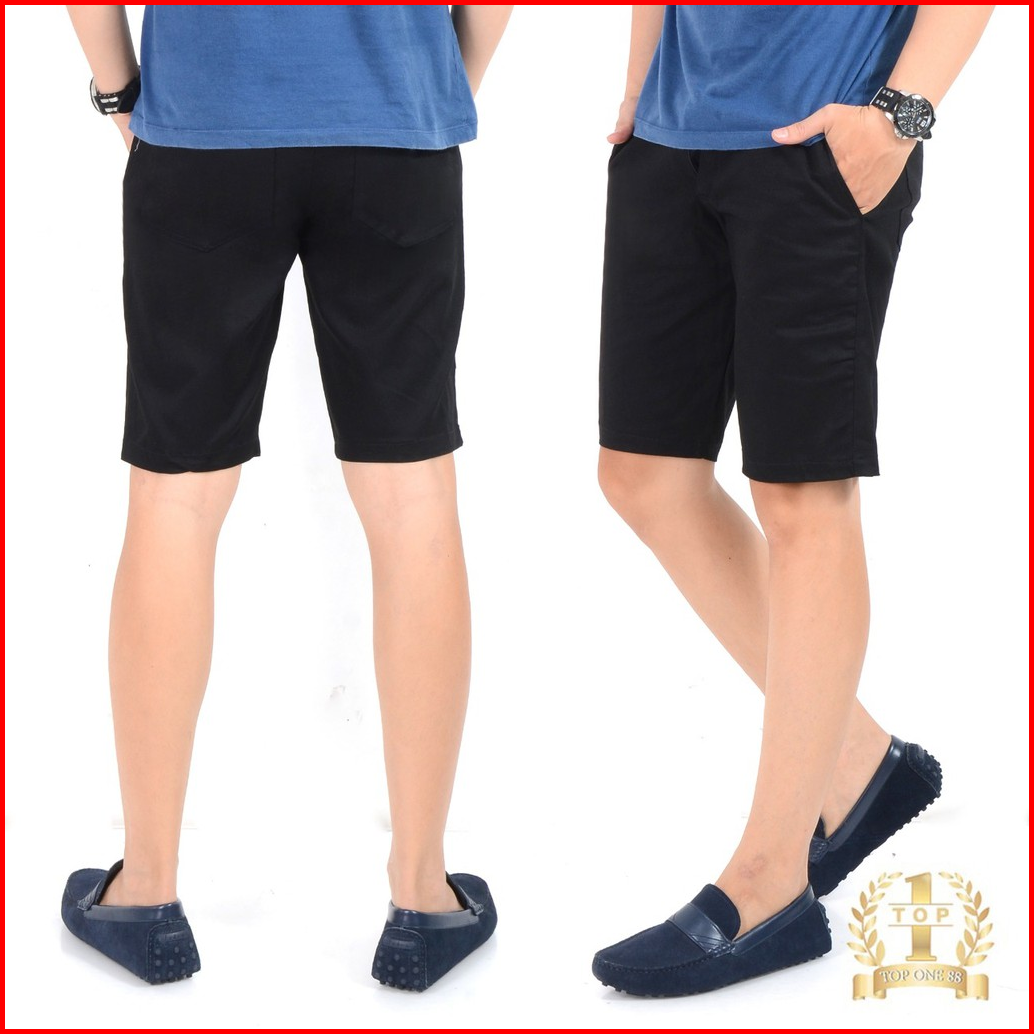 Luckyone Celana Pendek Chino Twill Stretch Pria Dewasa Hitam Putih