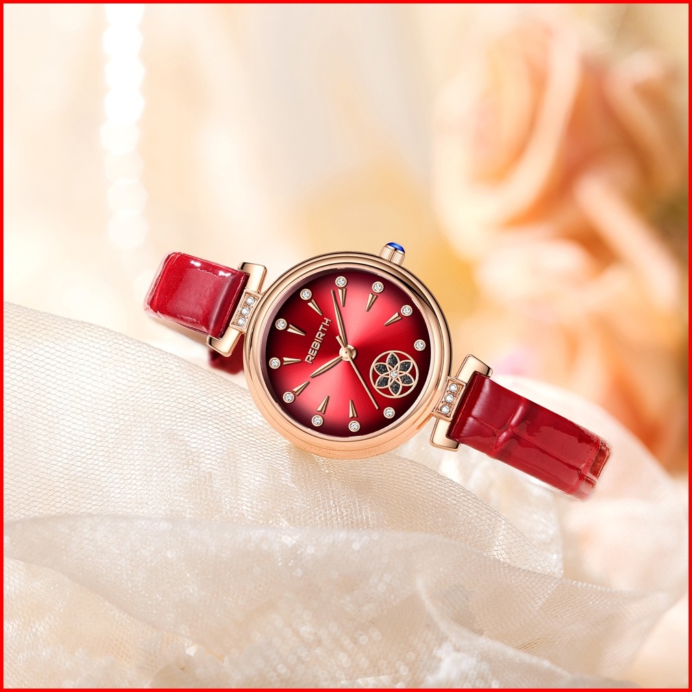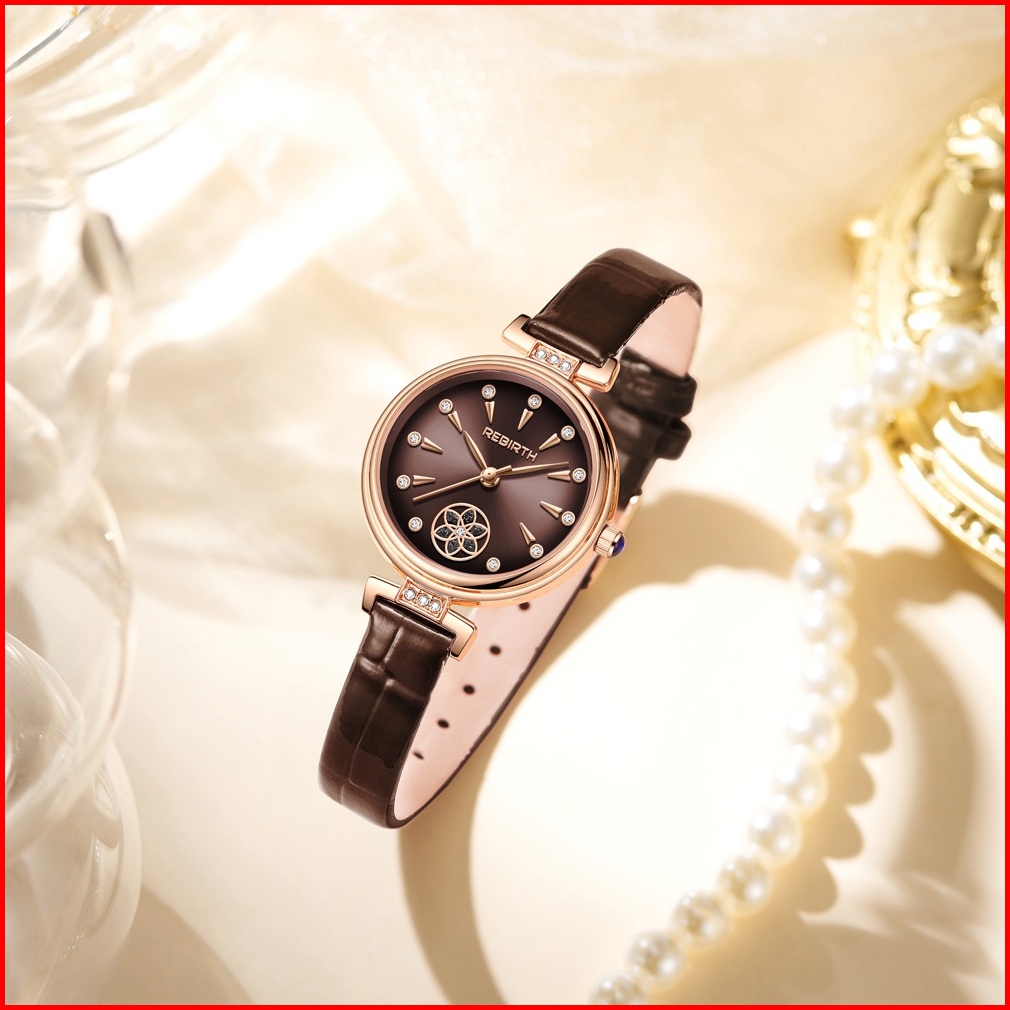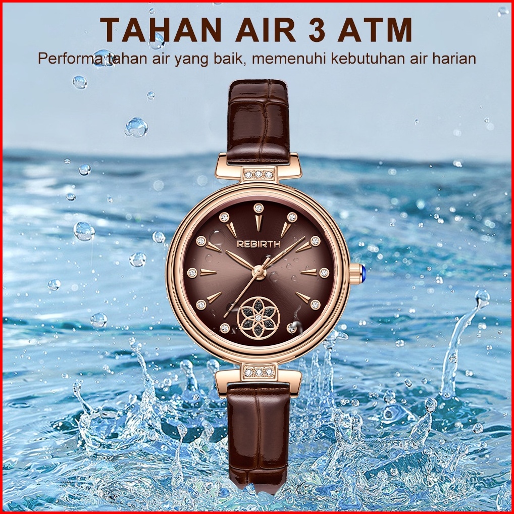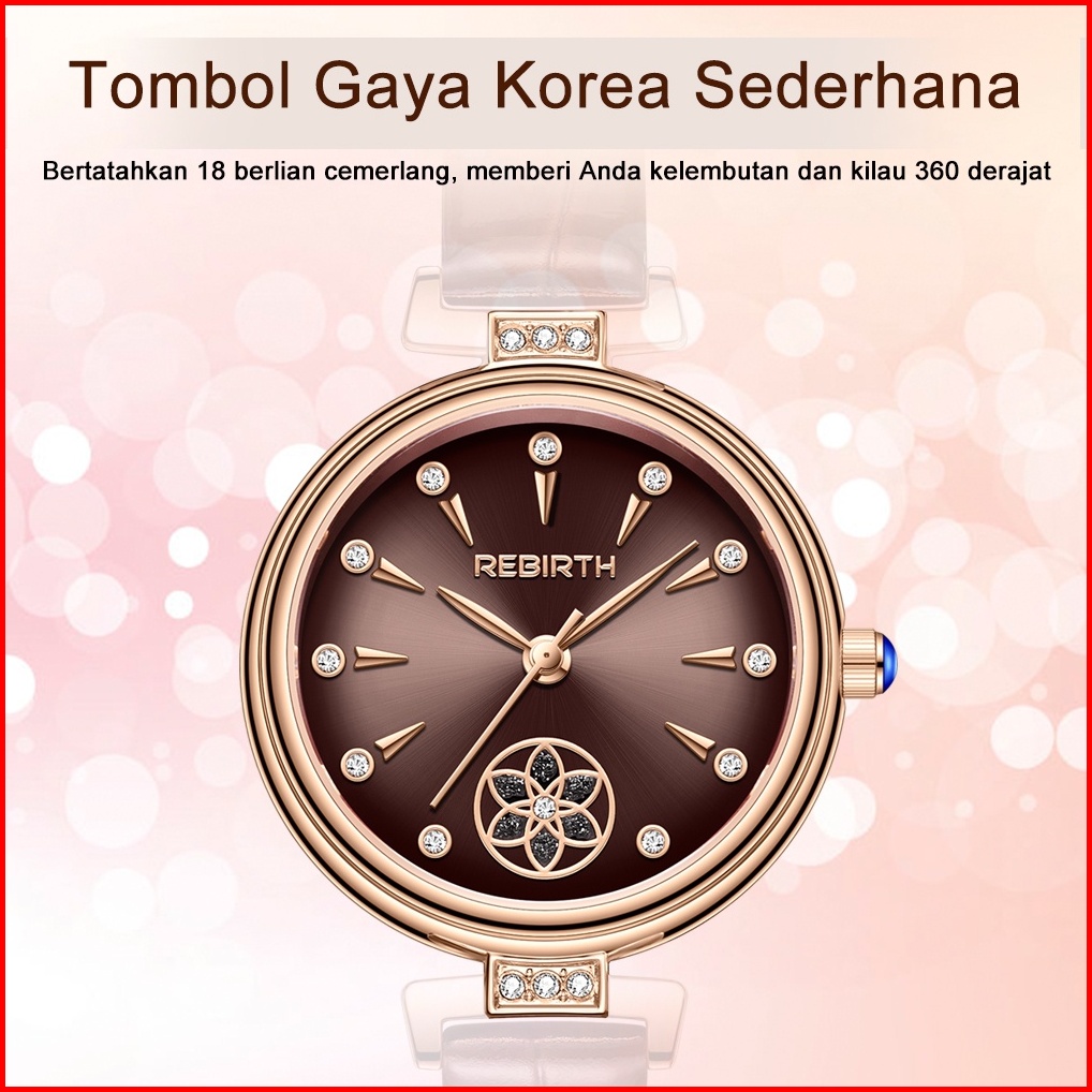 Rebirth Jam Tangan Wanita Berlian Anggun Anti Air Kuarsa Tali Kulit Gaya Korea Jam Tangan Cewek