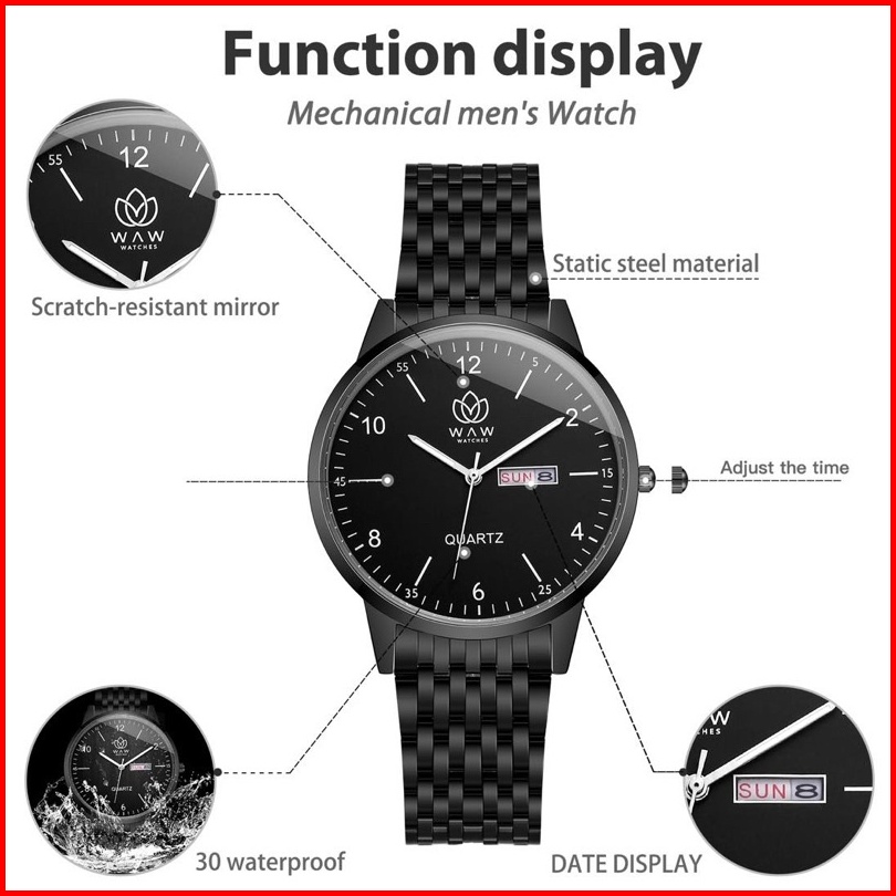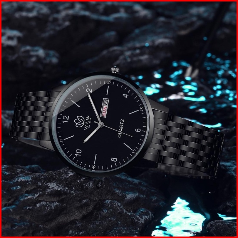 Waw Jam Tangan Pria Stainless Steel Hitam P003 - Anti Air Free Box Free Bubble