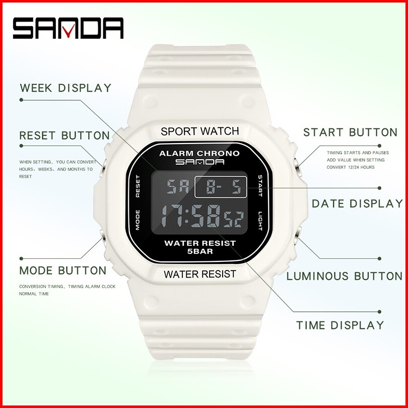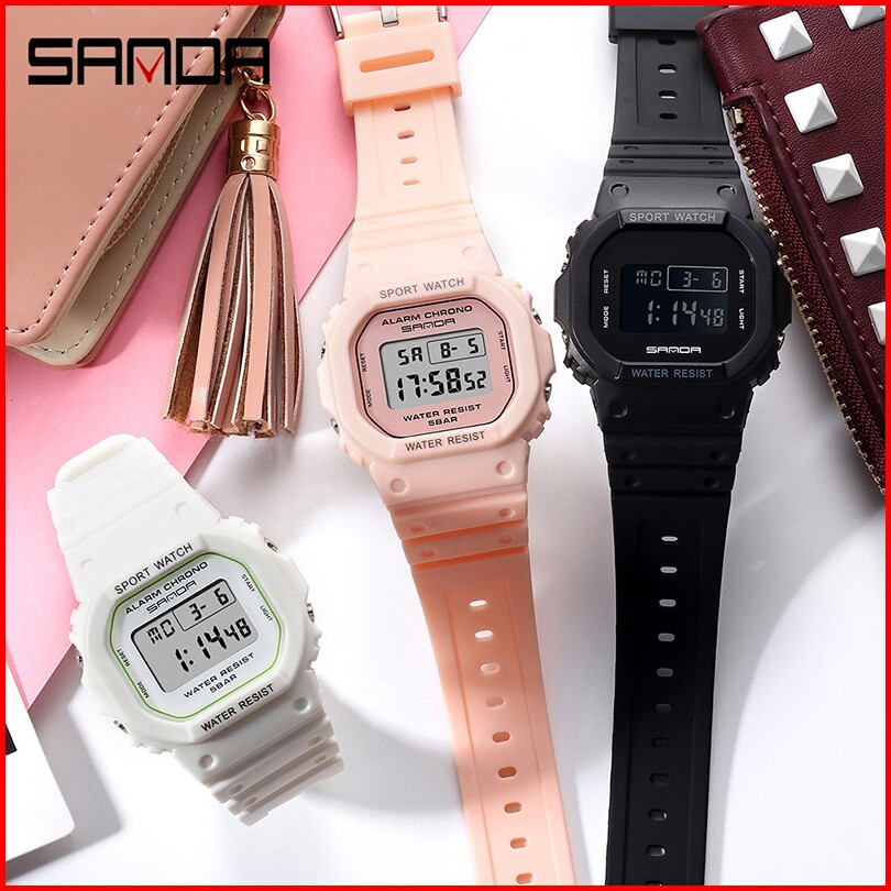Sanda 293c Jam Tangan Wanita Pria Digital Tali Rubber Chronograph Anti Air Currenos