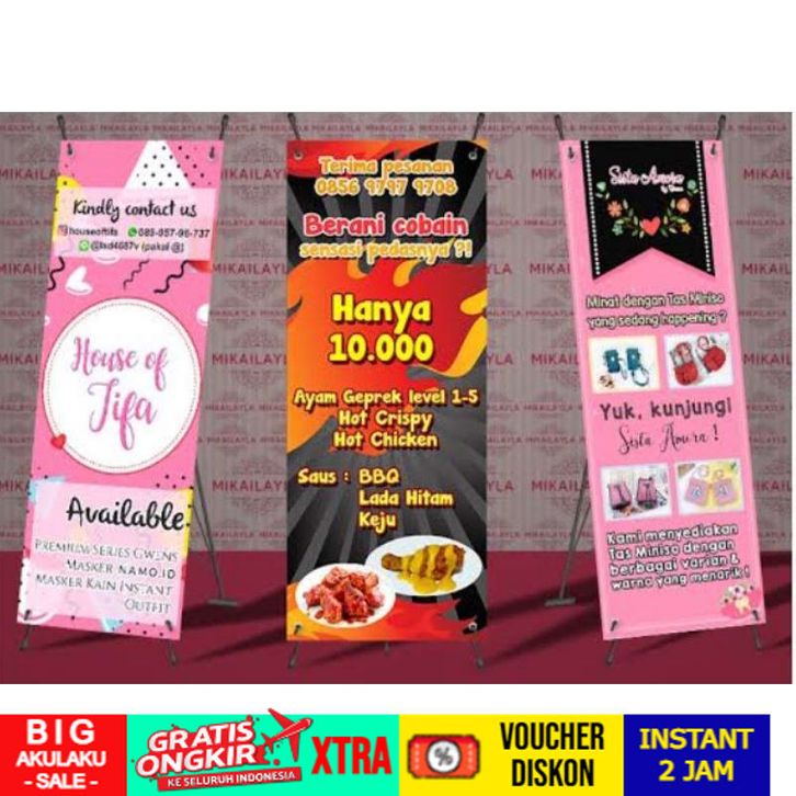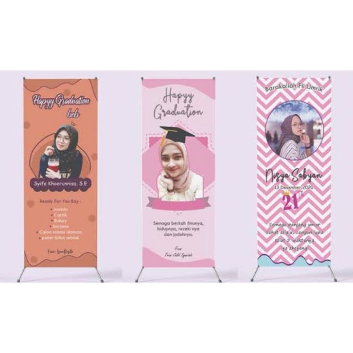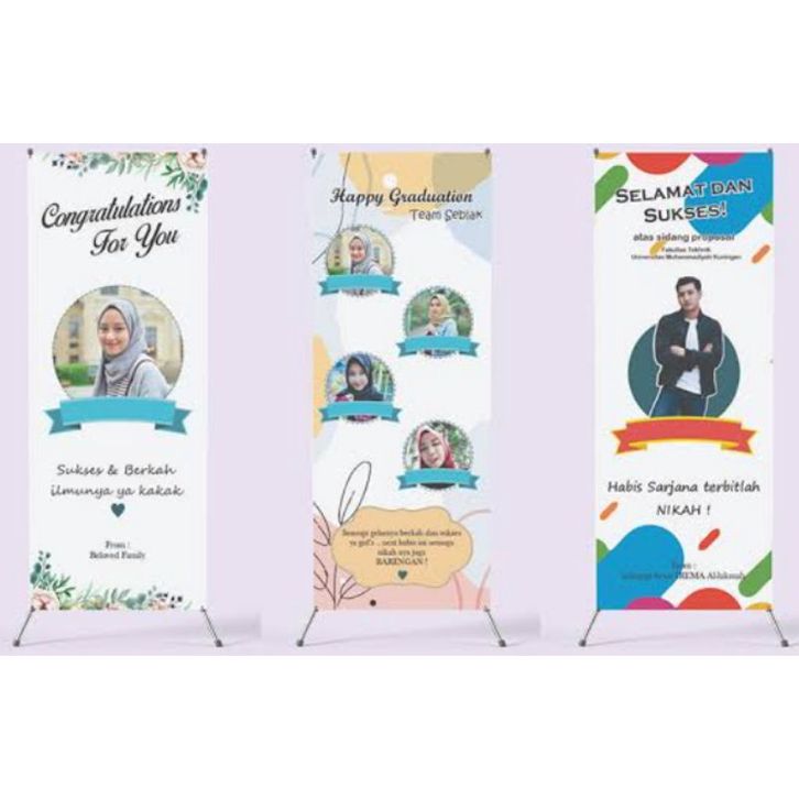Cetak paket spanduk x banner dan y banner + tiang wisuda wedding olshop ulang tahun agustusan custom