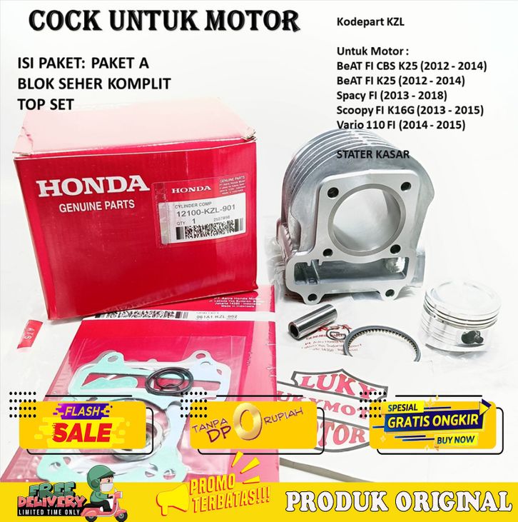 ASLI BLOK SEHER KOMPLIT PISTON & TOPSET BEAT FI , SCOOPY FI , VARIO 110 FI , SPACY KODE PART KZL STATER KASAR