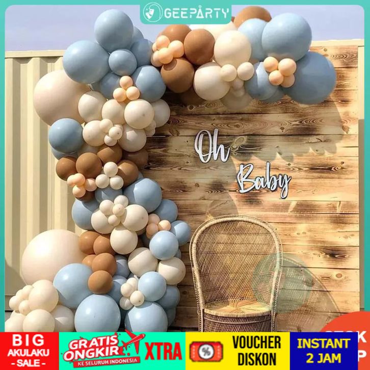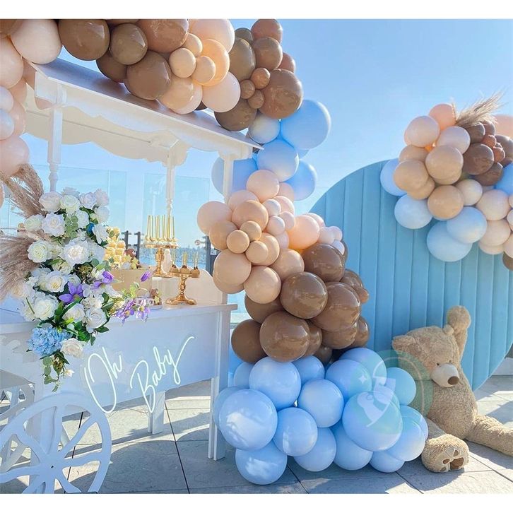 133 Pcs Kopi Kulit Aprikot Macaron Biru Balon Arch Garland Kit untuk Pesta Ulang Tahun Pernikahan Ulang Tahun Dekorasi