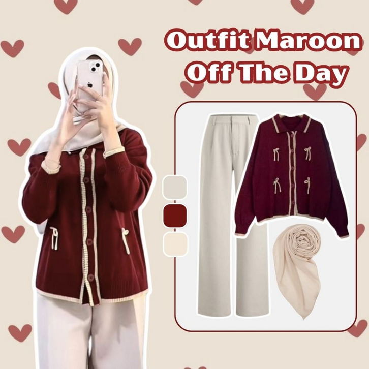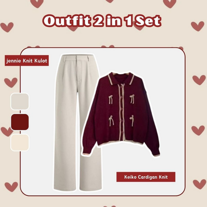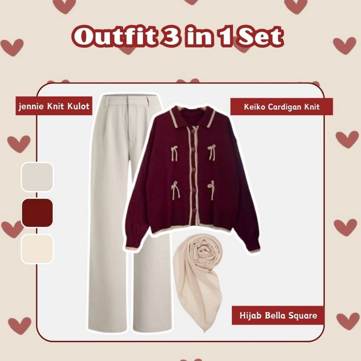 One Set Wanita Kekinian 3in1 Korean Style Outfit Kampus Setelan Baju Wanita Dewasa Cardigan Kulot Bella Square LU080