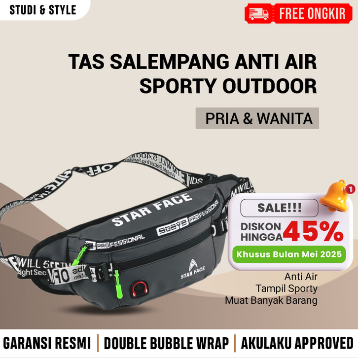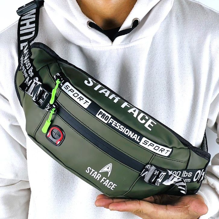 Tas Selempang Cowok Waterproof Sling Bag Cowok Tas Bahu Slempang Waistbag Outdoor Sporty Anti Air Muat HP Dompet Kontak
