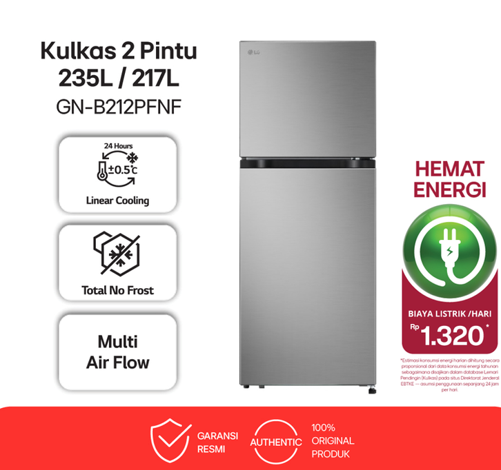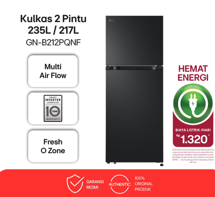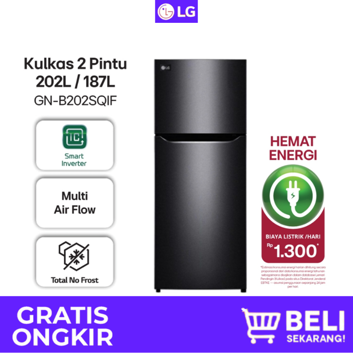 kulkas 2 pintu LG tanpa bunga es low watt inverter jumbo terbaru lemari lebar 202L / 187L - Smart Diagnosis - Inverter