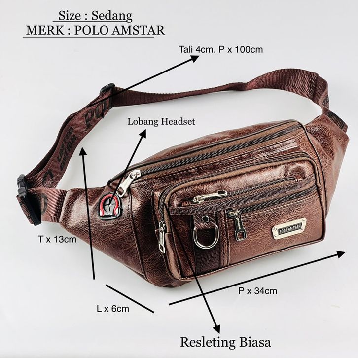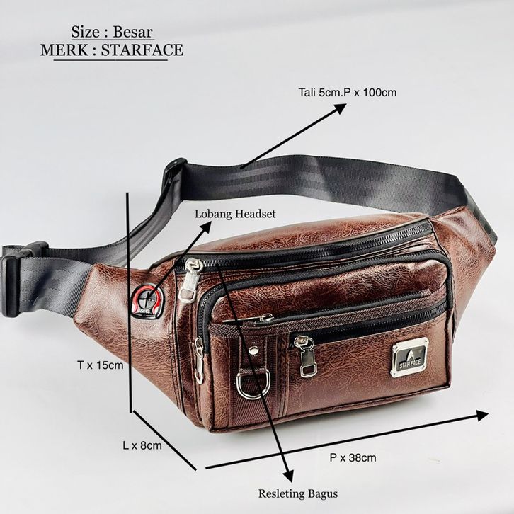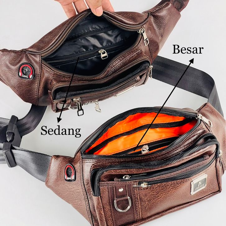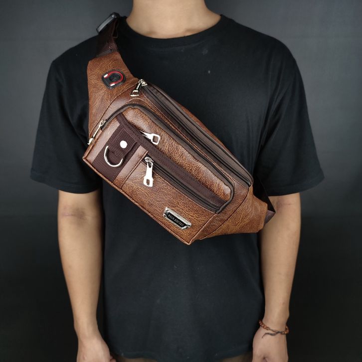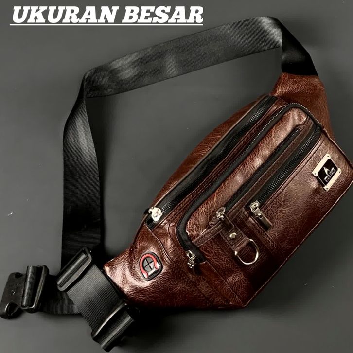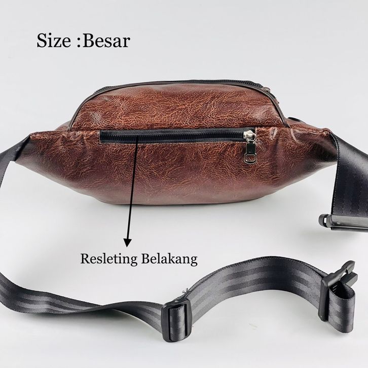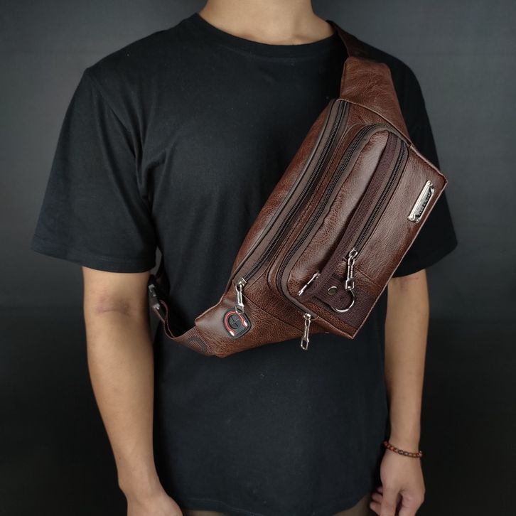 Waistbag Cowok Tas Selempang Cowok Slingbag Tas Dada Slempang Bahu Bahan Kulit Sintetis Premium Muat HP Dompet
