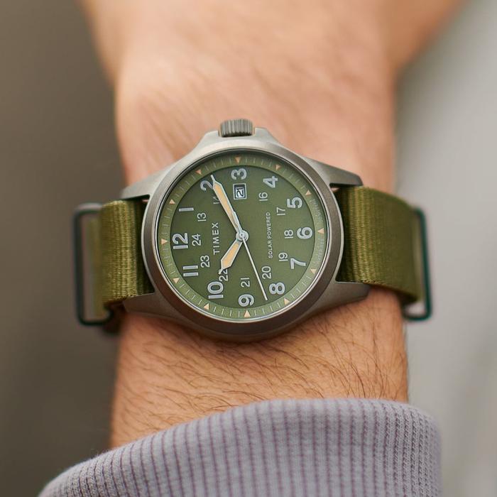Original 100%!! TIMEX TW2V03700 Expedition Field Solar Jam Tangan Pria Analog Green Army Kanvas Nylon