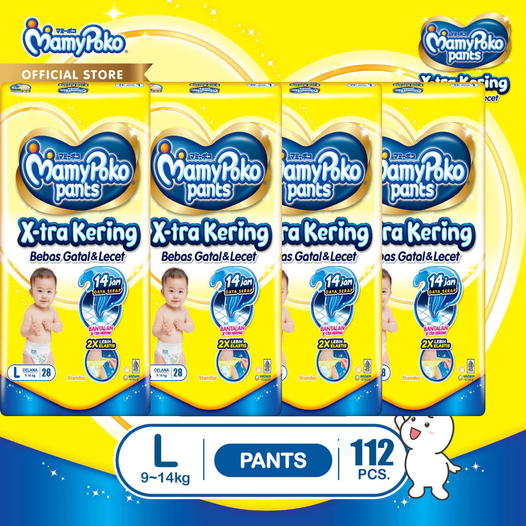 Paket 4 Ball MAMYPOKO STANDAR PANTS EXTRA KERING NB-S44 S38 M32 L28 XL26 XXL24 x [4pack]
