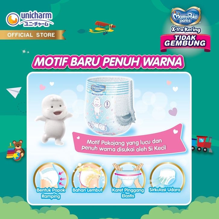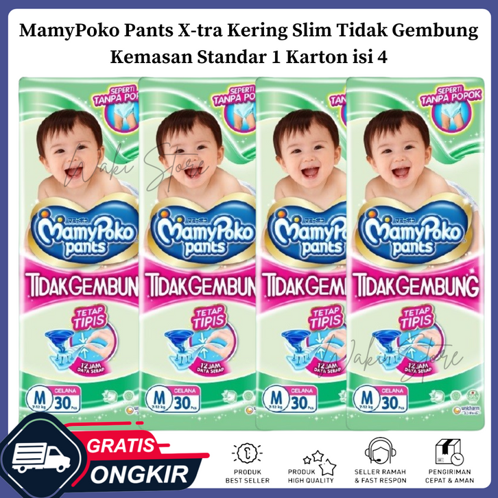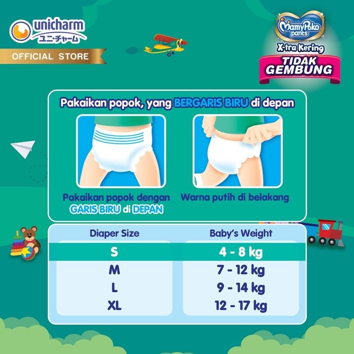 Pampers Mamypoko Pants Xtra Kering Slim Tidak Gembung S32/M30/L30/XL23 Popok Bayi Celana 1 Karton isi 4