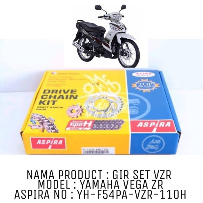 GIR SET GEAR SET + RANTAI ASPIRA VZR - 110H UNTUK MOTOR YAMAHA VEGA ZR