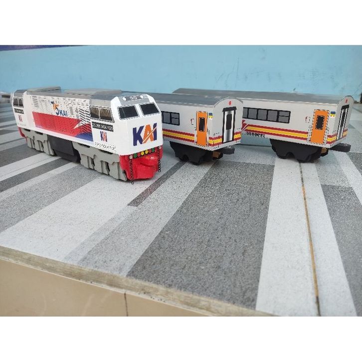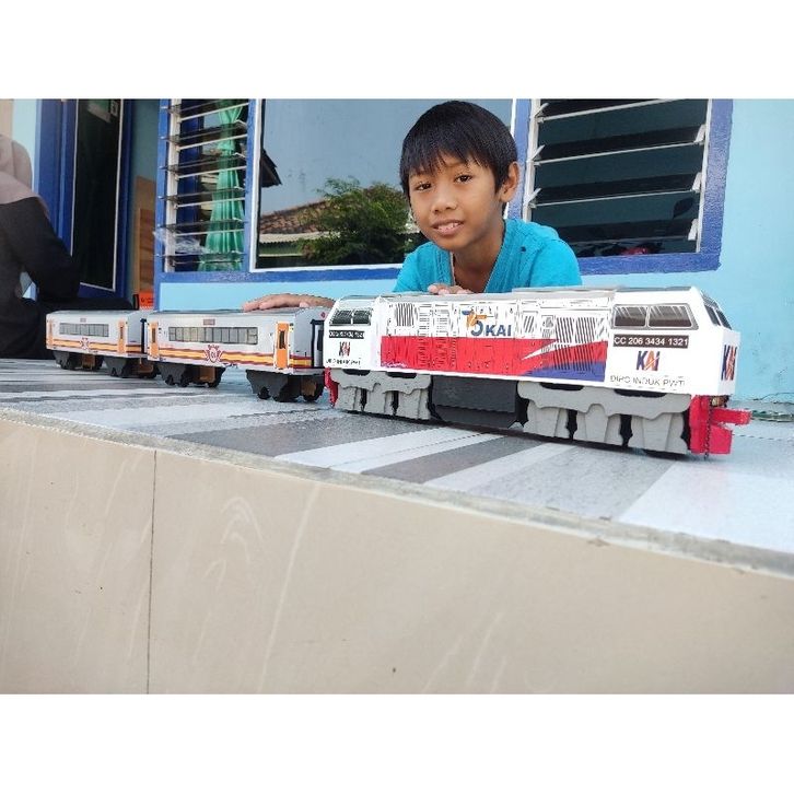 Kereta Mainan Anak miniatur satu set kereta api kayu cc 206+2gerbong ekonomi