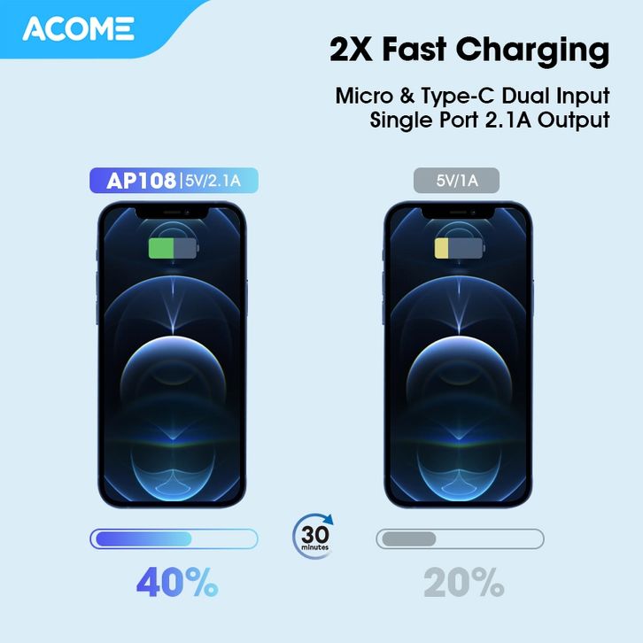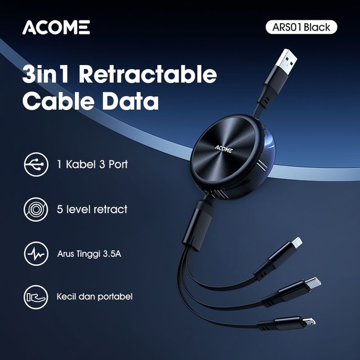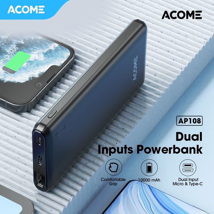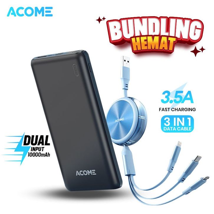 ACOME Bundling Hemat PowerBank 10000mAh 2.1A Dual Input Port Micro& Type-C Original AP108+ACOME 3 in 1 Retractable Data
