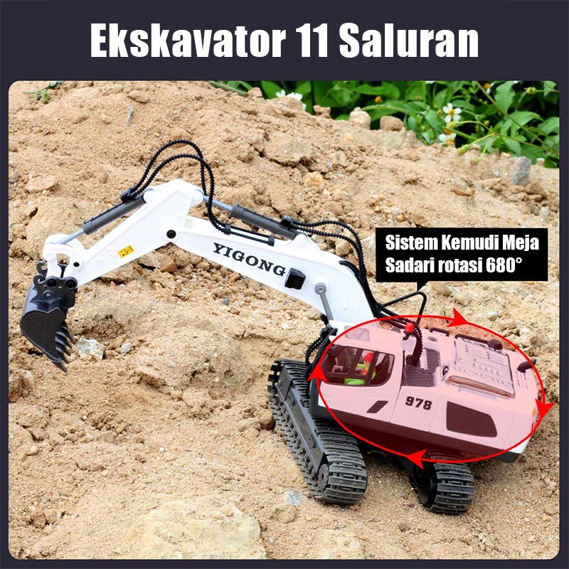 HELIK Excavator Remote Control Bahan Alloy 11CH 2.4GHZ RC Beko Mainan Excavator Listrik
