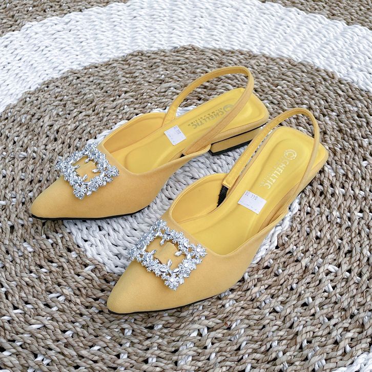 PROMO Sepatu Flat Slip On Mules Wanita Hak Tahu 2cm Terbaru|Sepatu Pesta Wanita Casual Manik-Manik Blink ZR 044