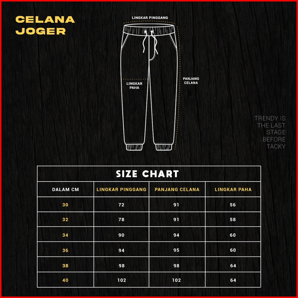 JOGGER HITAM, JOGGER ABU, JOGGER KHAKI, JOGGER BROWN, JOGGER PASTA, CHINO PDK HITAM, CHINO PDK KHAKI, CHINO PDK PASTA