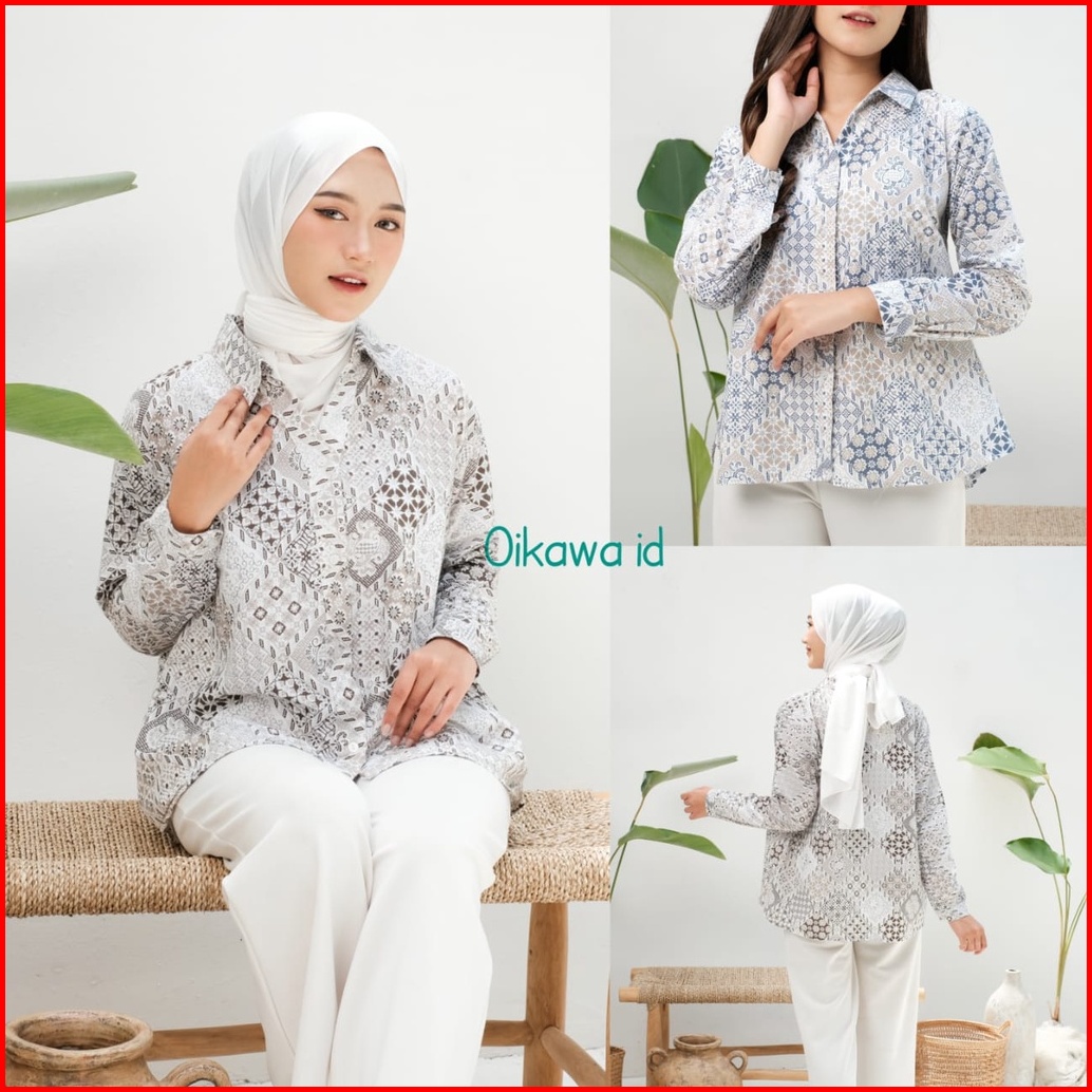 Kemeja Batik Blouse Kantor Batik Soft Wanita