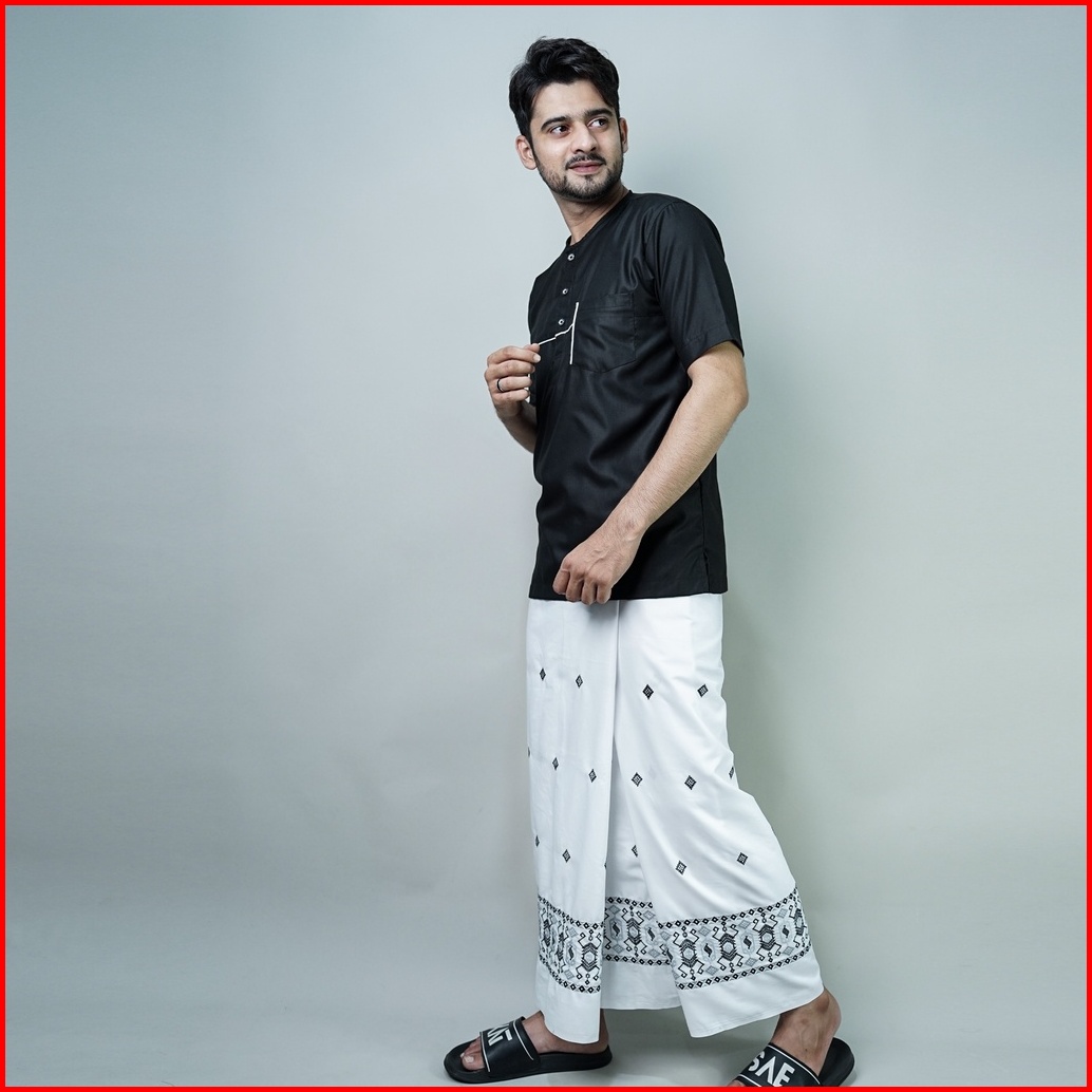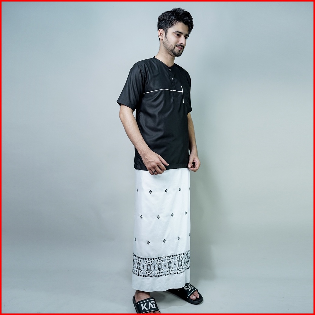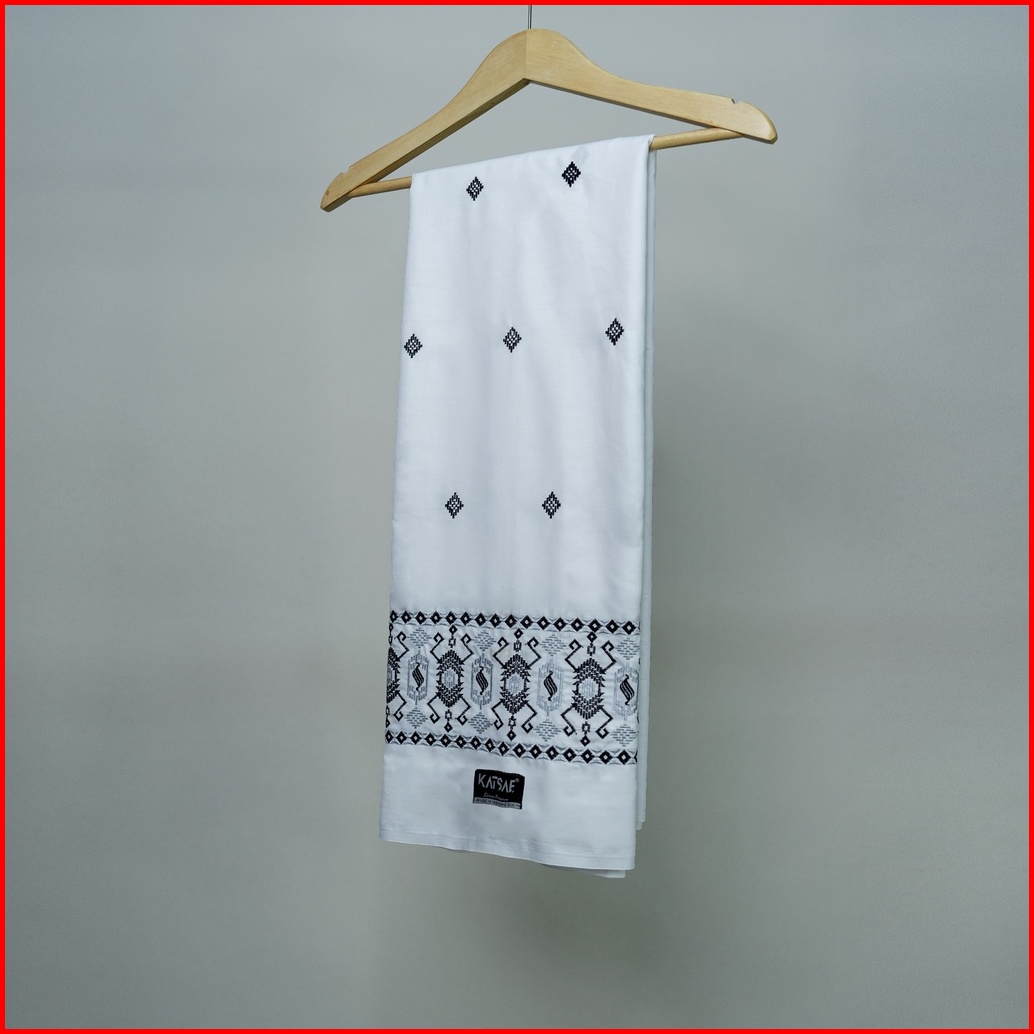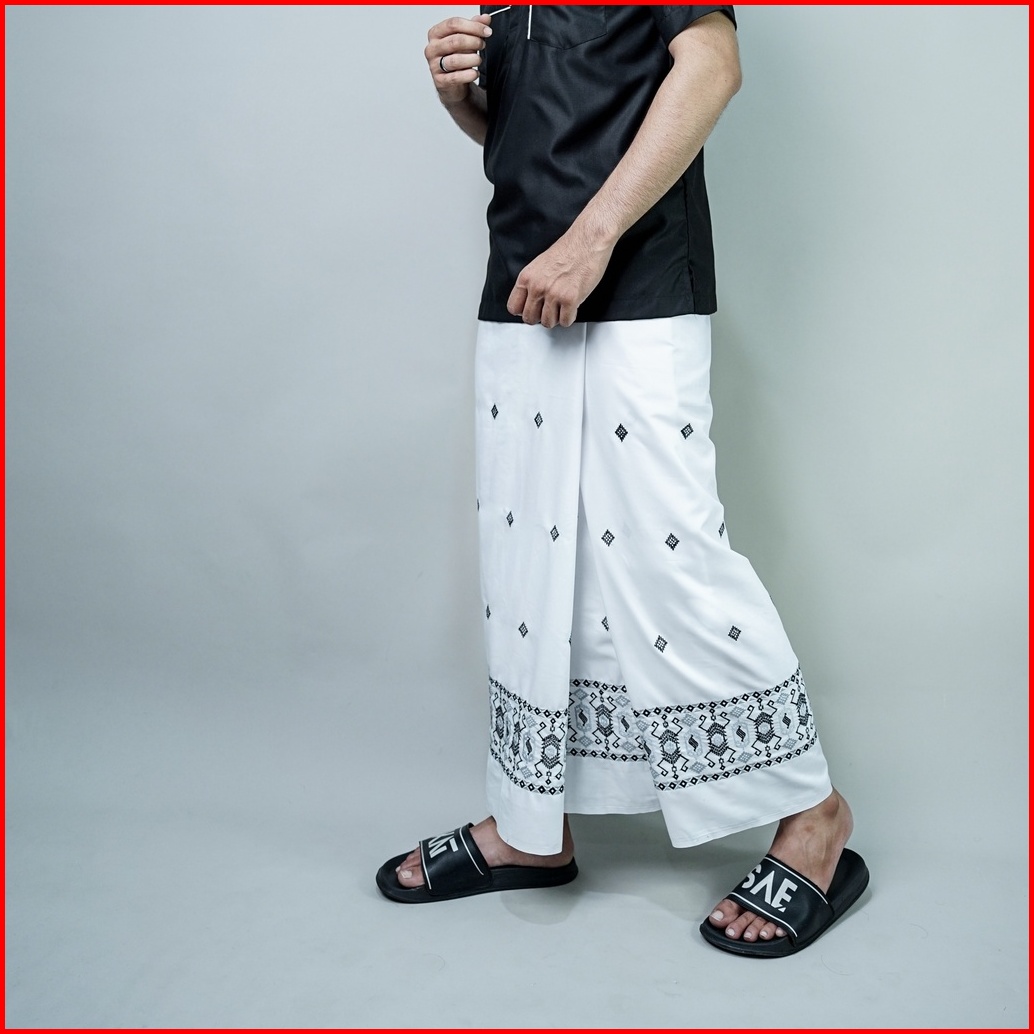 Katsae - Sarung Bordir Motif Bali Bordir Timbul Sarung Pria Dewasa Warna Putih Sarung Sholat 100 Bordir