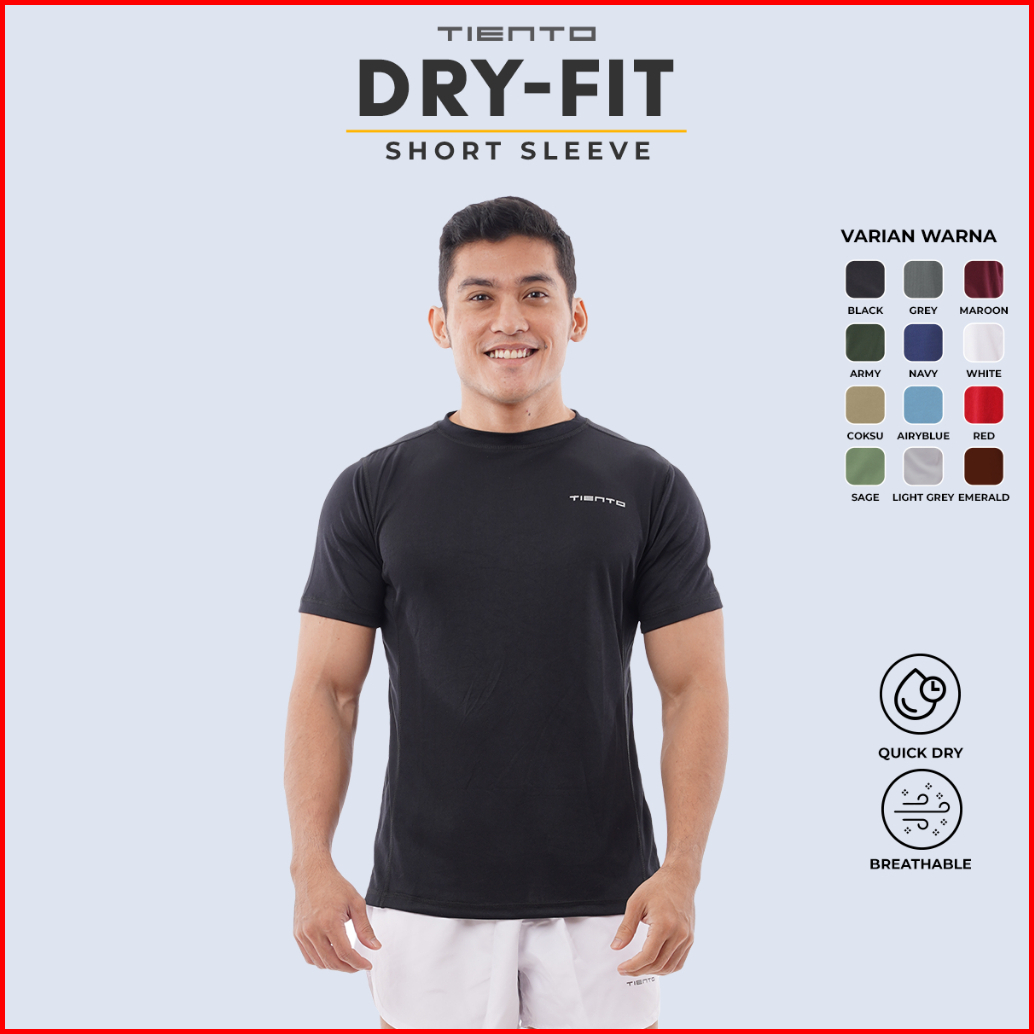Tiento Kaos Running Dry Fit Baju Olahraga Lari Pria Gym Pakaian Sport Lengan Pendek Pria
