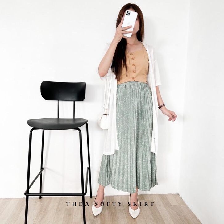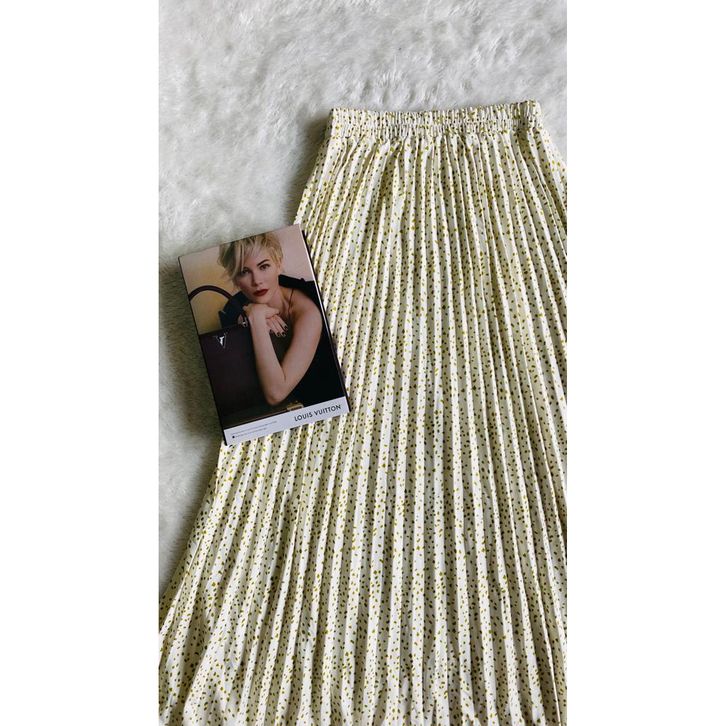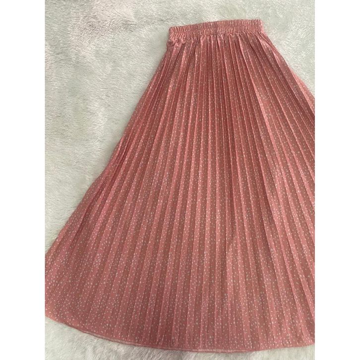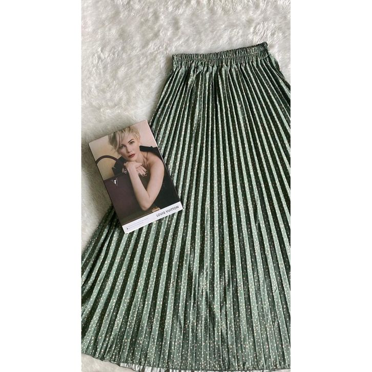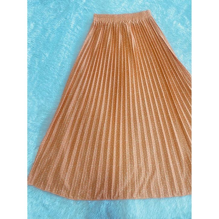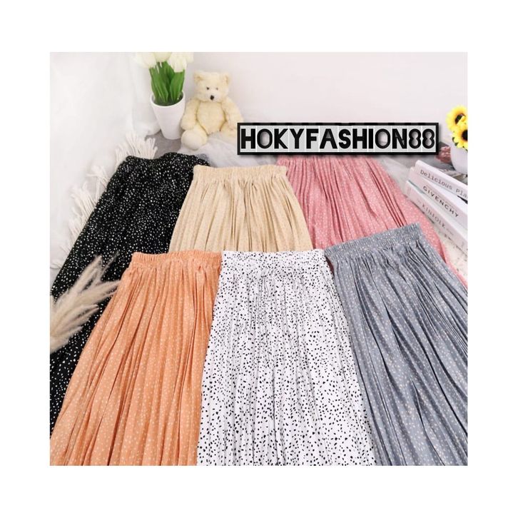 Rok Plisket Motif Bintik Mayun Cewek Bawahan Rok Muslimah Wanita Kasual Formal Bahan Hyget Super Premium