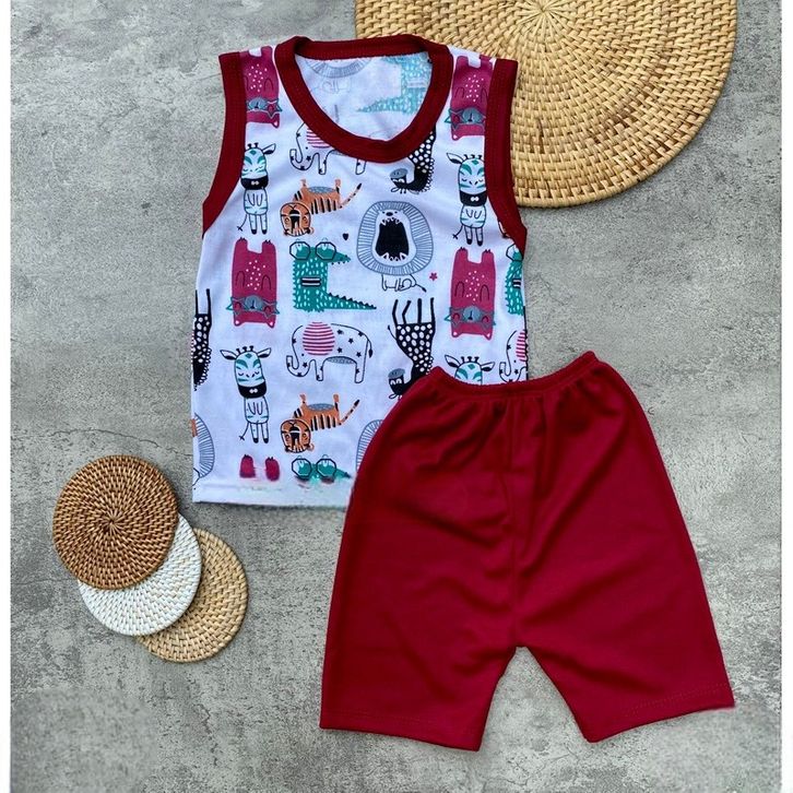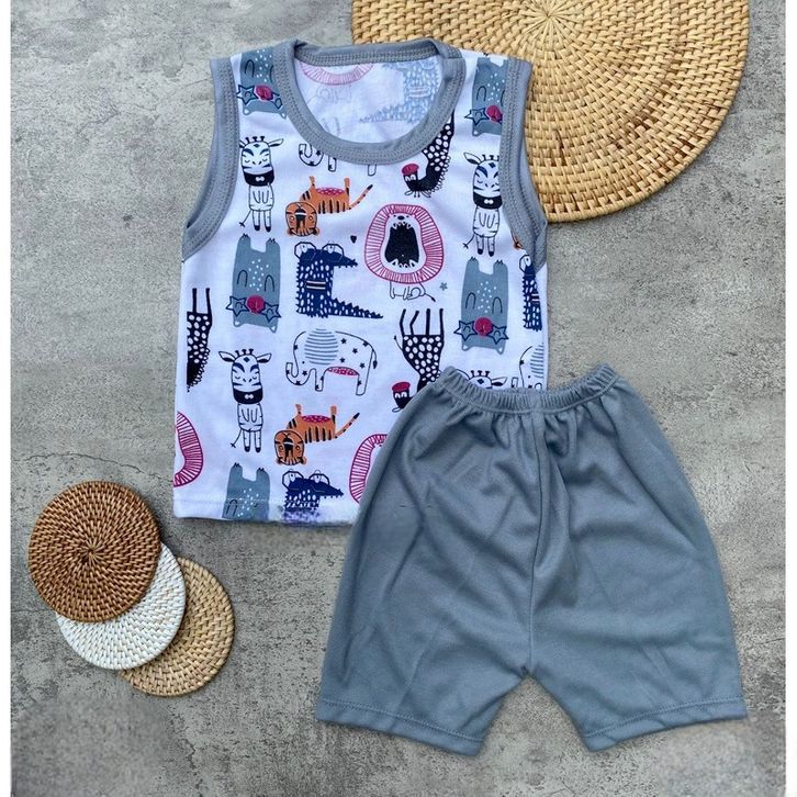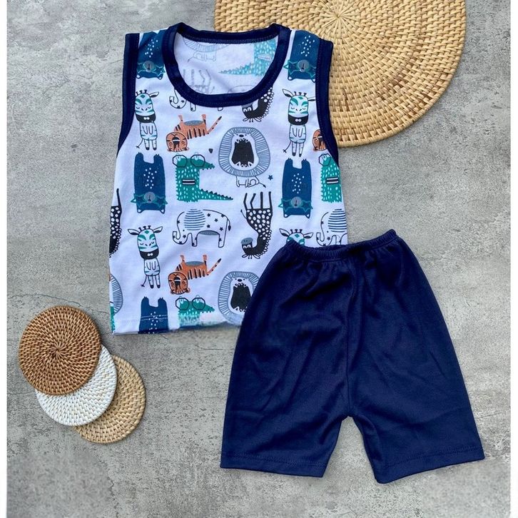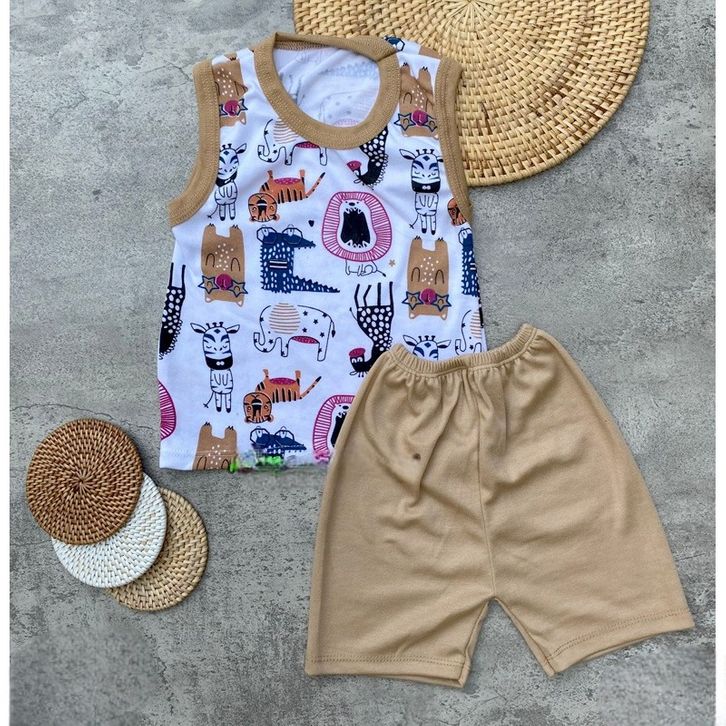Setelan Baju Bayi Setelan Singlet Bayi Setelan Kutung Usia 3-12 Bulan Motif Jungle Land