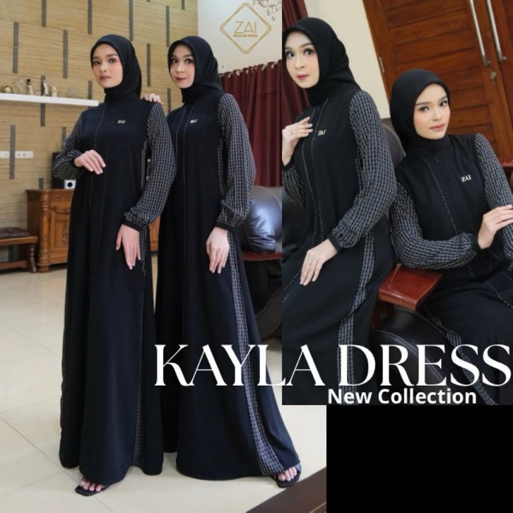 [Star] Gamis model kekinian terbaru 2026 Kayla Dress Original By Zai Muslim Wear Jetblack Premium gamis mewah elegan