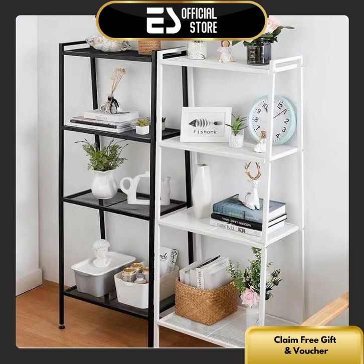 PROMO ES Rak Buku Rak Ruang Tamu Serbaguna Tingkat 4 Susun 2 Warna Putih Hitam 2 Ukuran