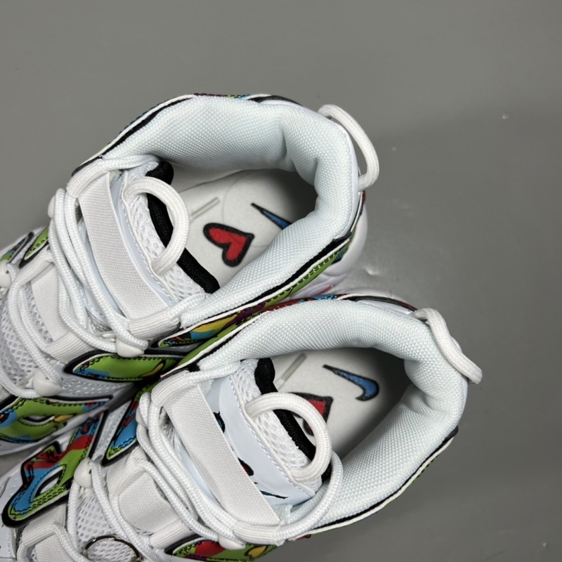 NIKE AIR MORE UPTEMPO 96 ROUGH GREEN PEACE LOVE TRICOLOR