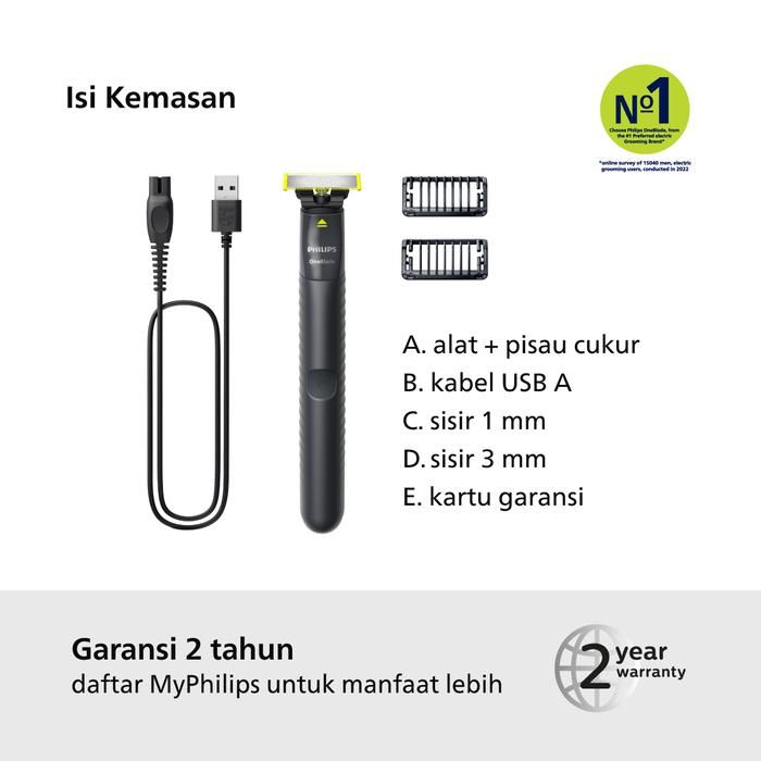 Philips | OneBlade | Alat Cukur Electric Hybrid Pria | Cukur dan Tata Tanpa Luka Baret | Handle | QP1424/10