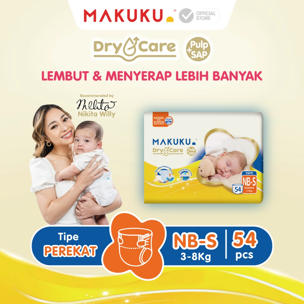 1 Ball MAKUKU DRY CARE TAPE NB S54 M48+10 L44+10 XL36+6 XXL34+6 Popok Bayi