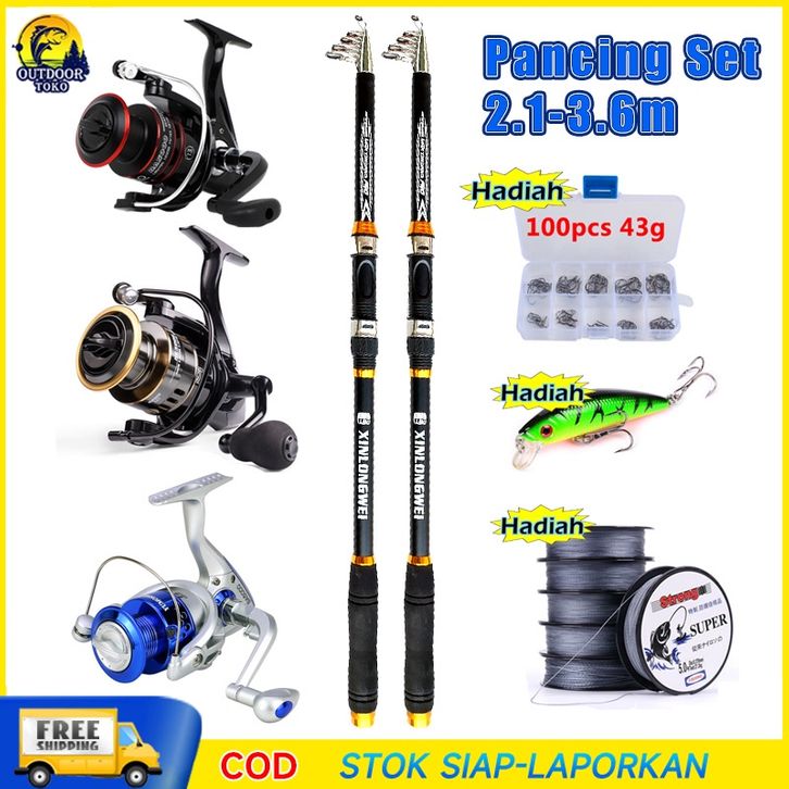 Joran daiwa Joran Pancing Set 2.1m-3.6m Telescopic Fishing Rod 6-7 Sections Carbon Fiber Fishing Rod Spinning Fishing R
