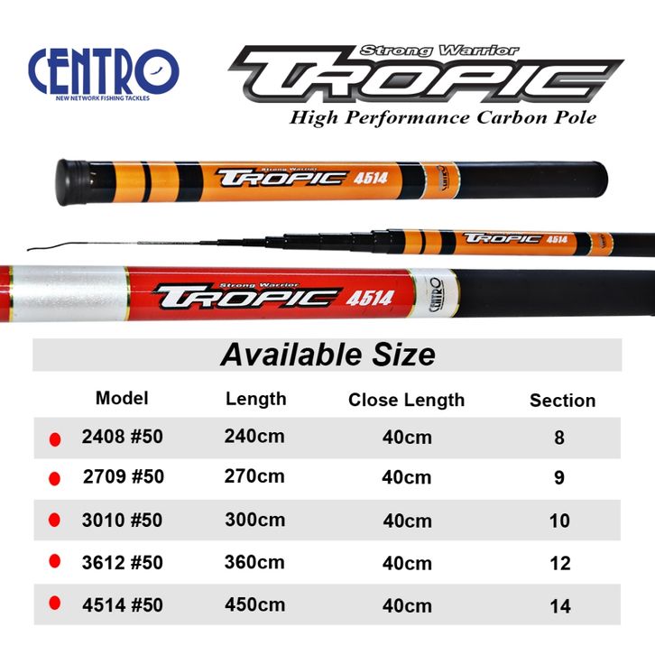 Joran Tegek CENTRO Joran Pancing Tegek TROPIC Ruas Pendek Carbon Ringan 240CM - 450CM