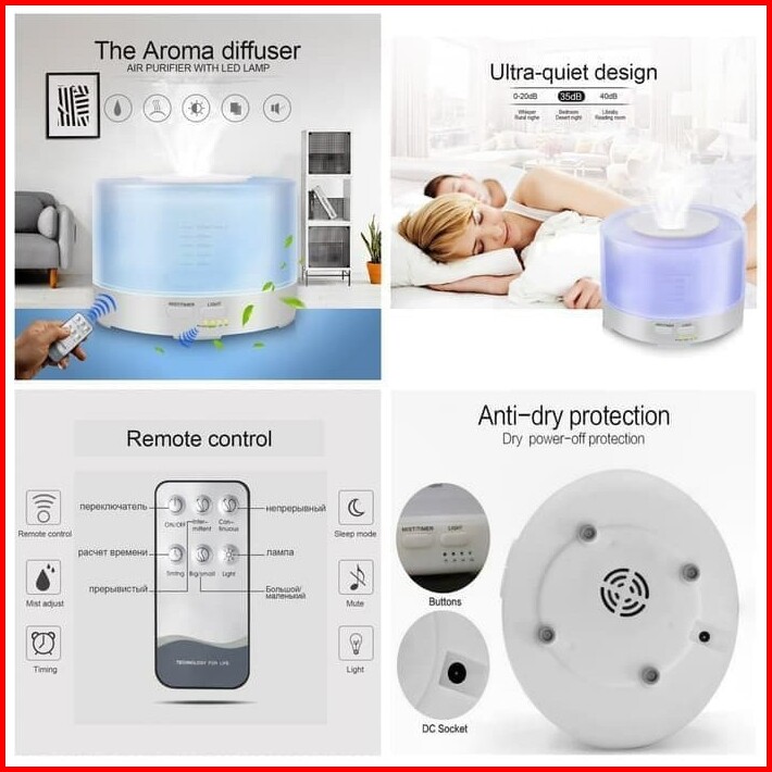 Upupin Humidifier Diffuser Aroma Terapi Essential Oil Pelembab Remote 7 Color Led
