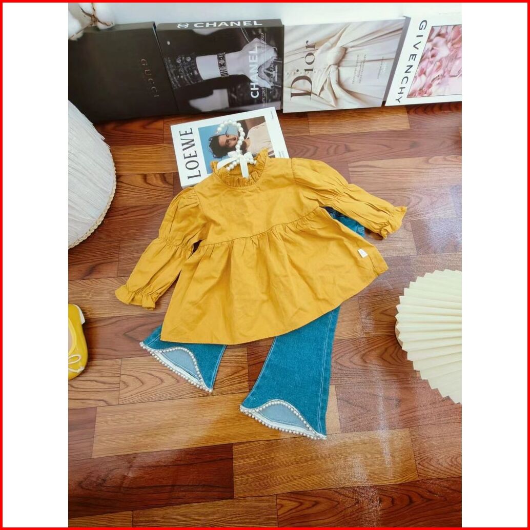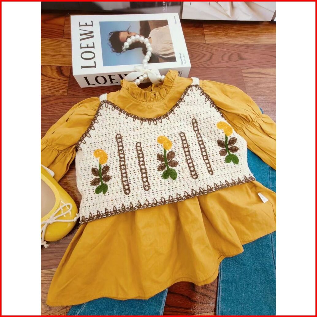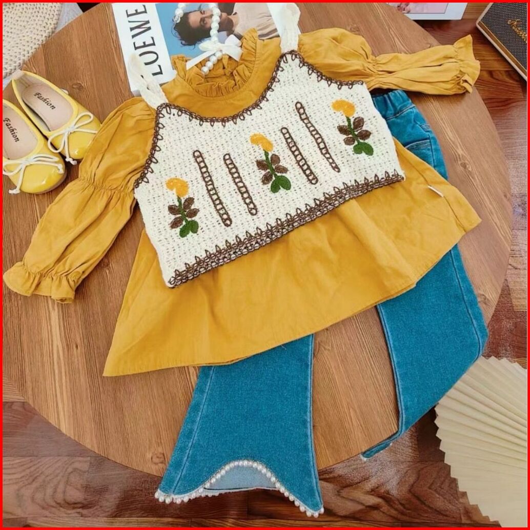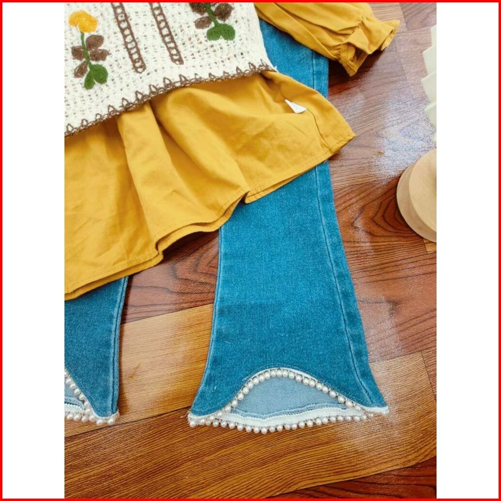 Loli-jkt Bs- 545 Setelan Anak 3n1 Rompi Bordir Sulam Celana Jeans Size 100-140
