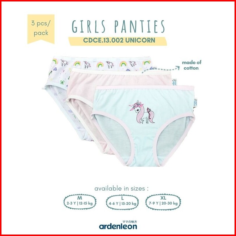 Ardenleon Girls Panties 3 Pcs Unicorn Celana Dalam Anak