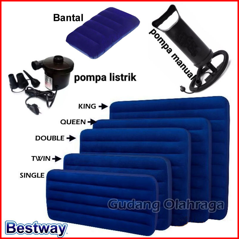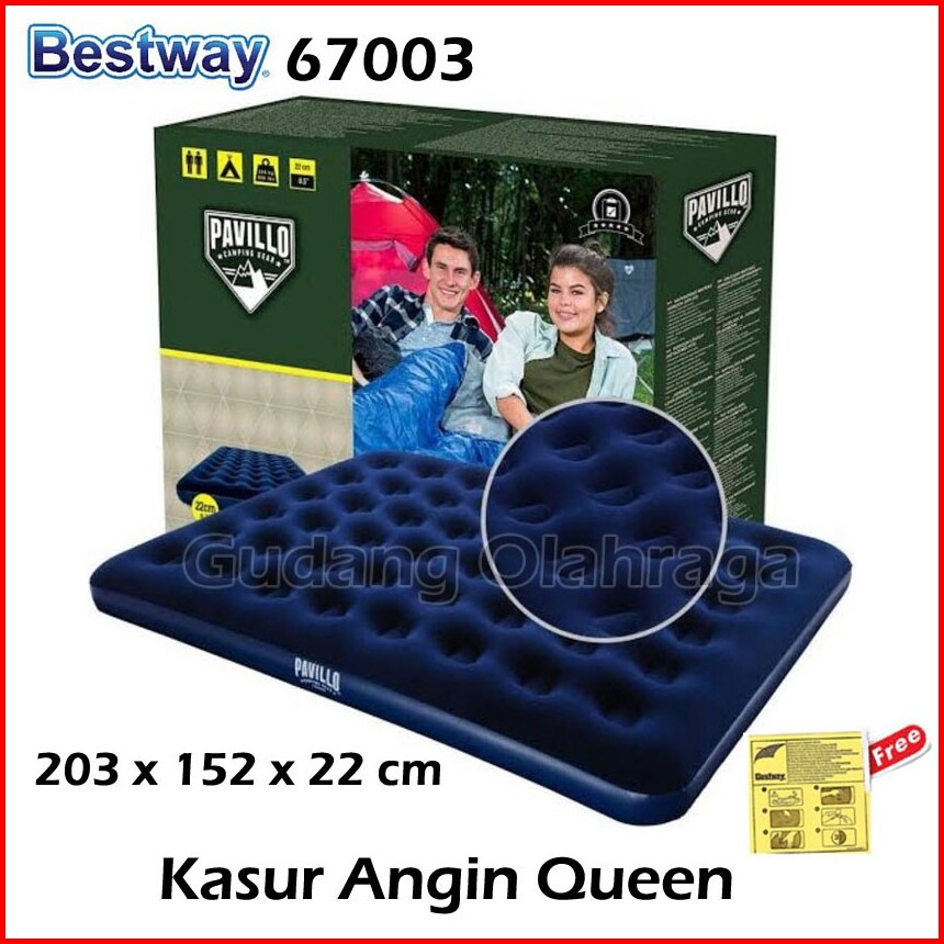 Bestway 67003 Kasur Angin Queen Biru 203cm X 152cm Kasur Tiup Air Bed Queen Size