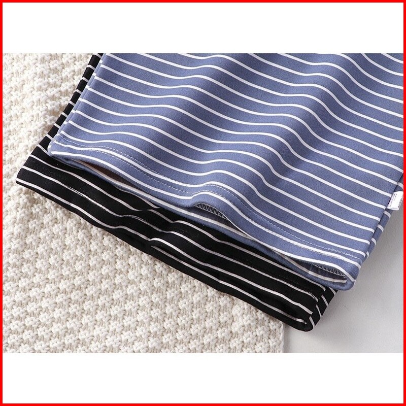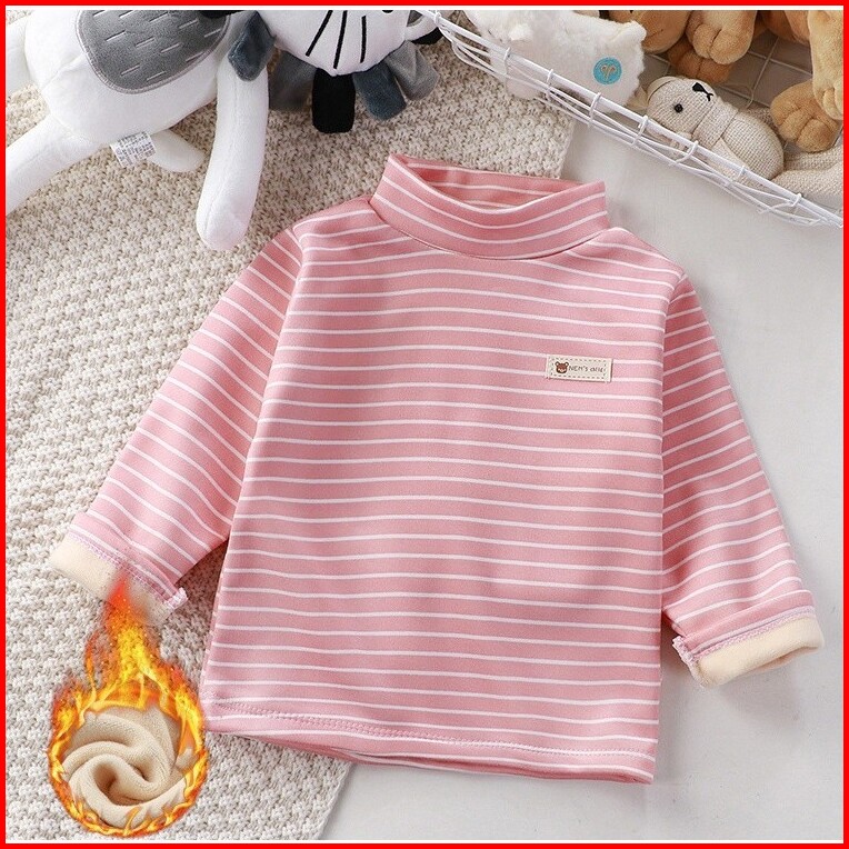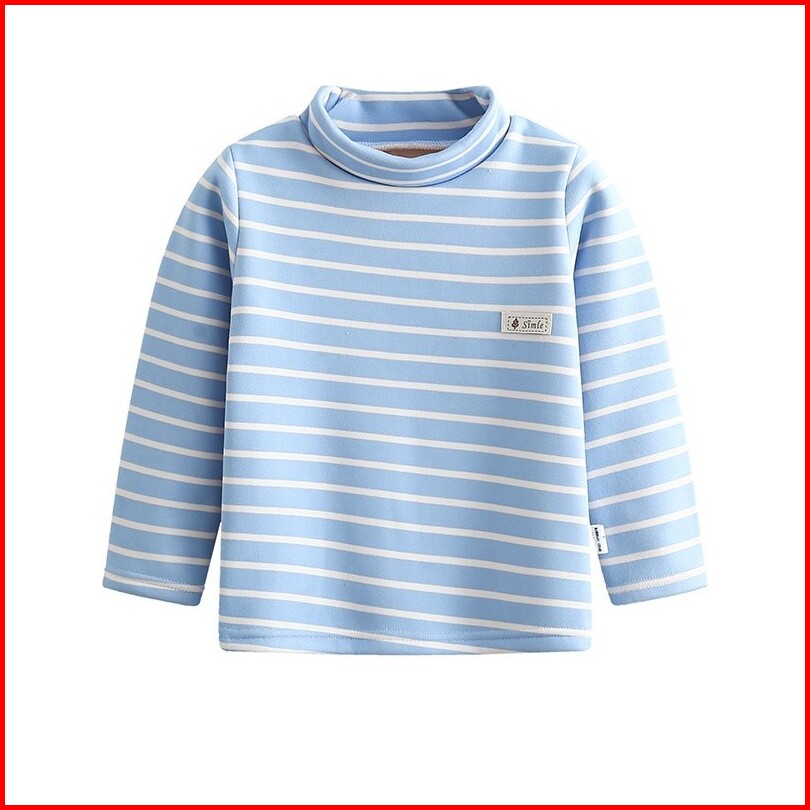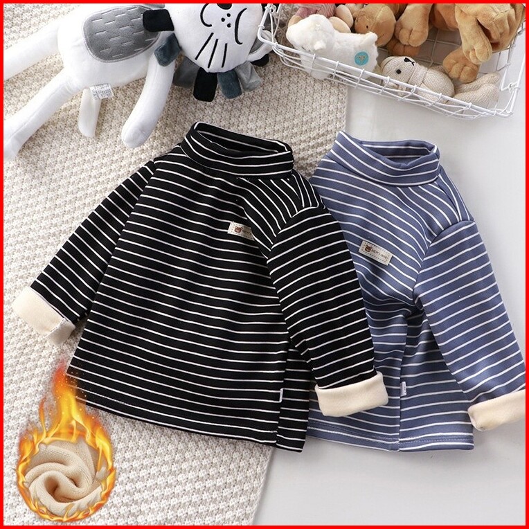 Baju Anak Perempuan Atasan Longsleeve Turtleneck Motif Garis Import
