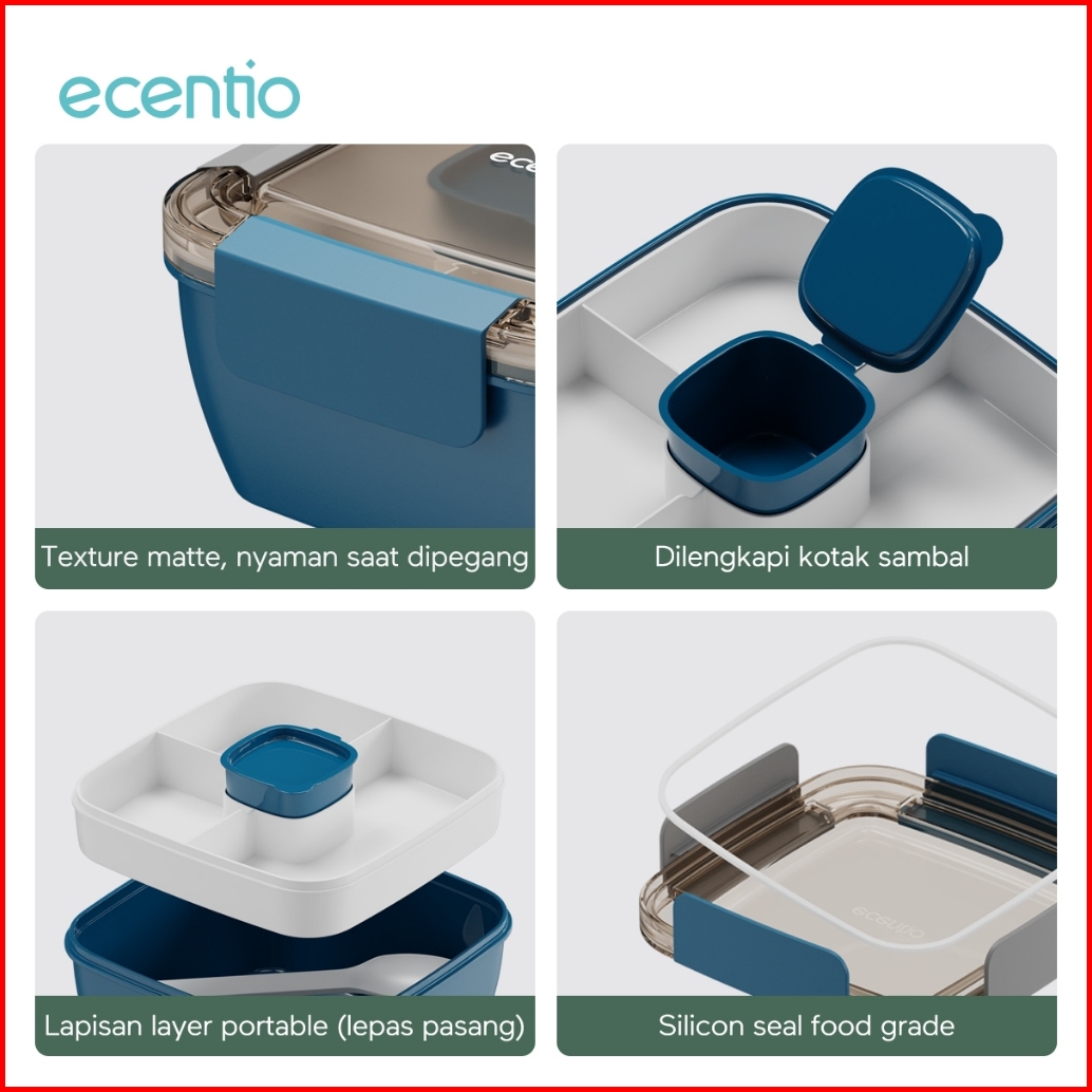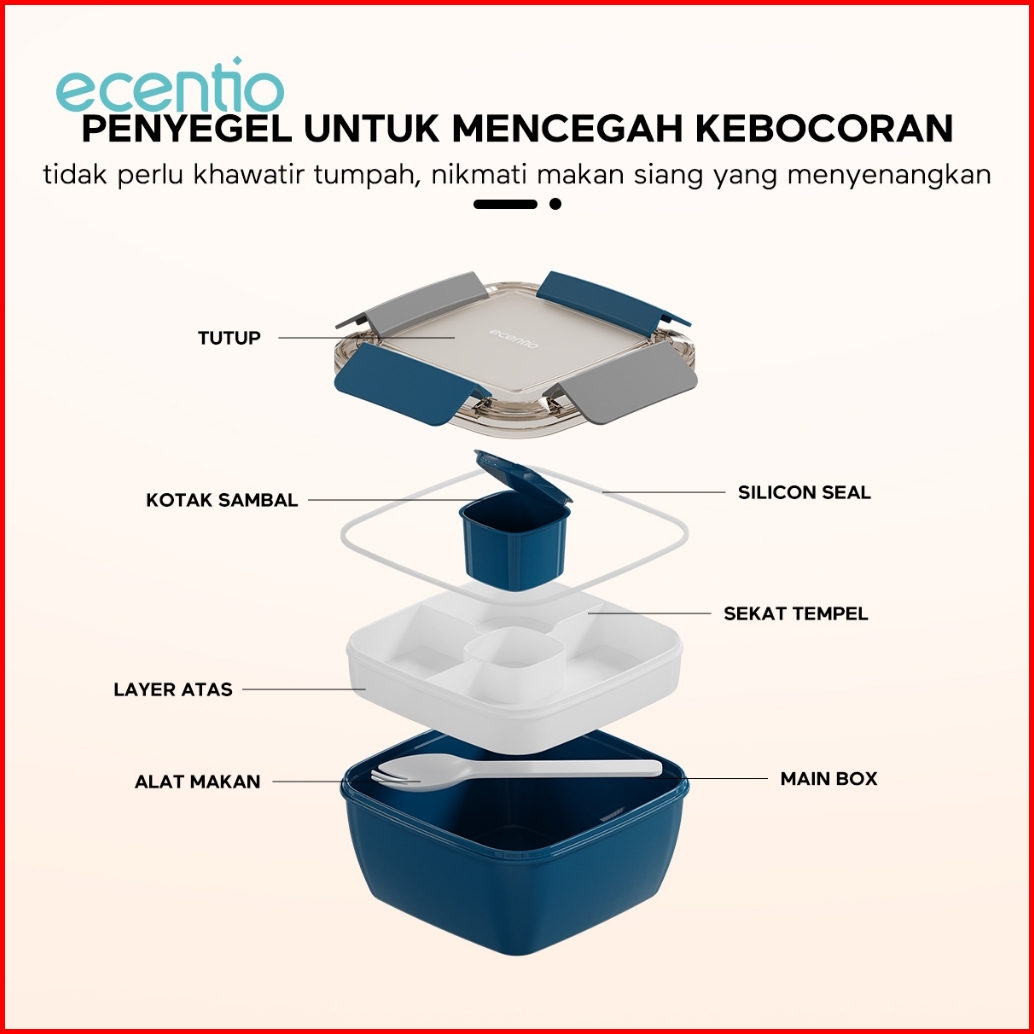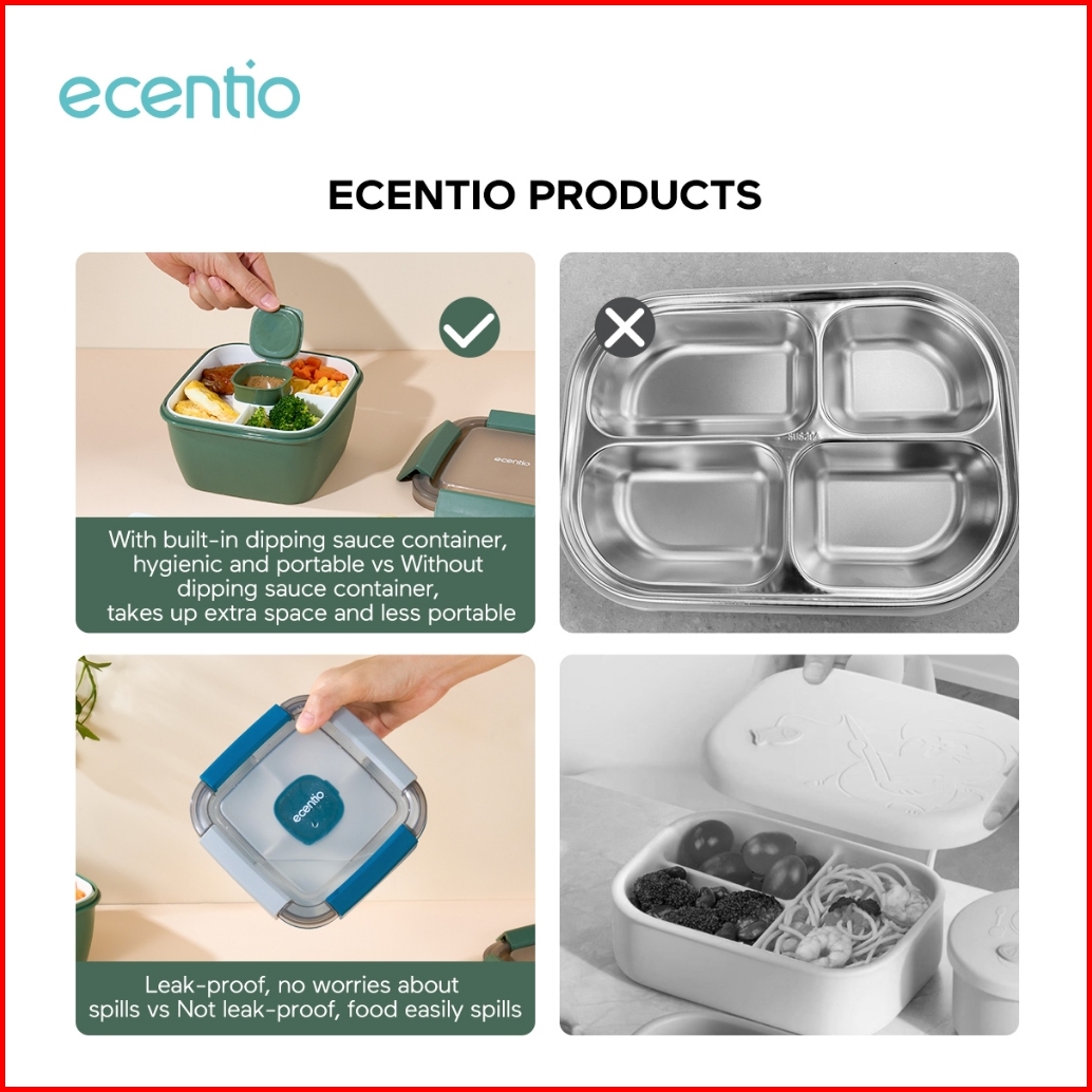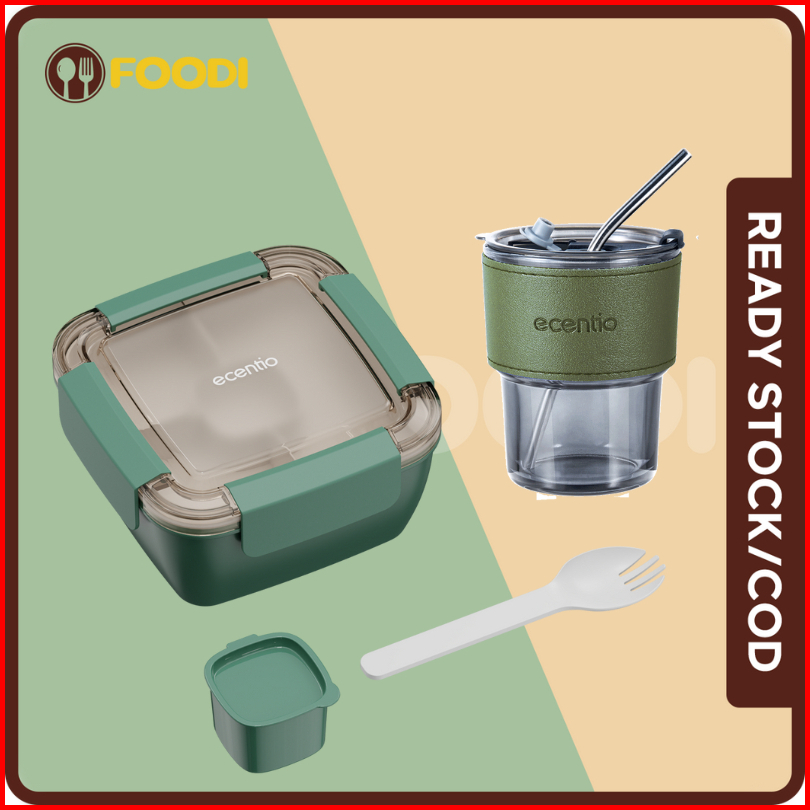 1.0 Anti Tumpahecentio Foodi Tempat Makan Anak 1300ml 1100ml Lunch Box Set Mangkuk Sup Dan Kotak Bekal Free Sauce Cap Lu