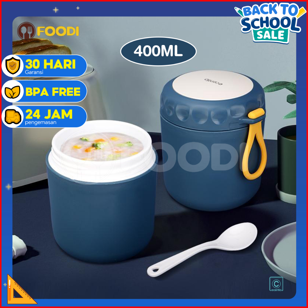 Ecentio Foodi Termos Air Panas Mini Termos Mini 400ml 450ml Anti Bocor Tumpah Portable Mug Kotak Bekal Makan Free Sendok