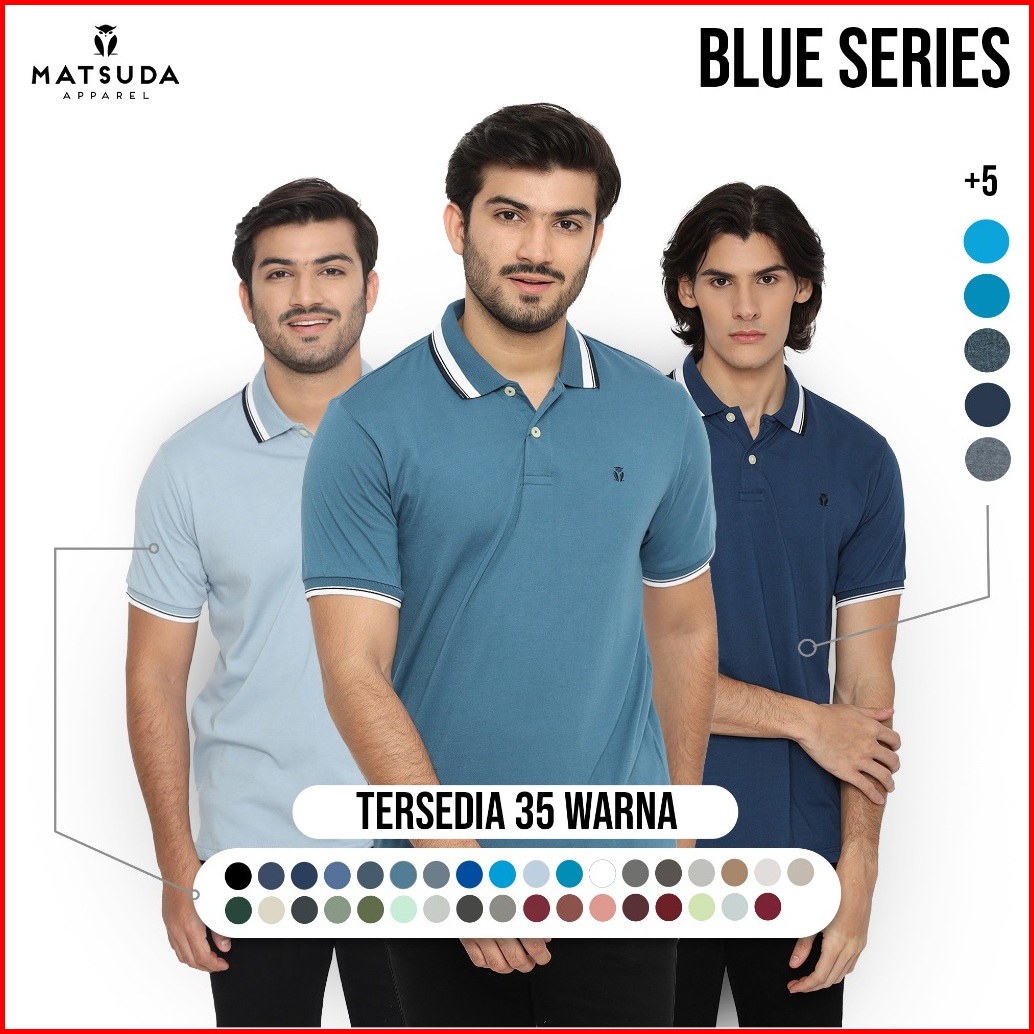 Matsuda Kaos Polo Shirt Pria Kerah Aioi Seri Warna Biru